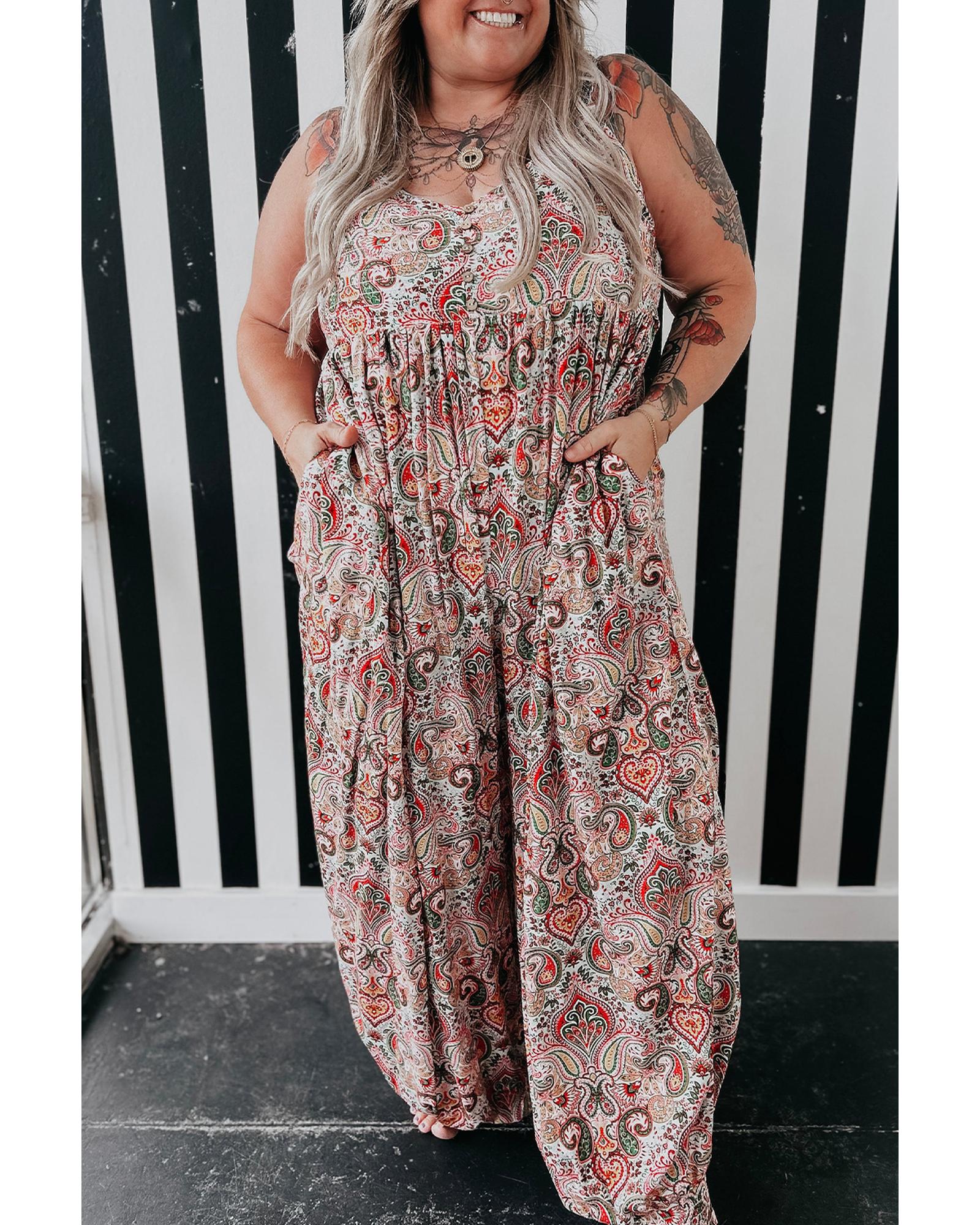 Multicolour Plus Size Paisley Print Sleeveless V Neck Jogger Jumpsuit – 4X