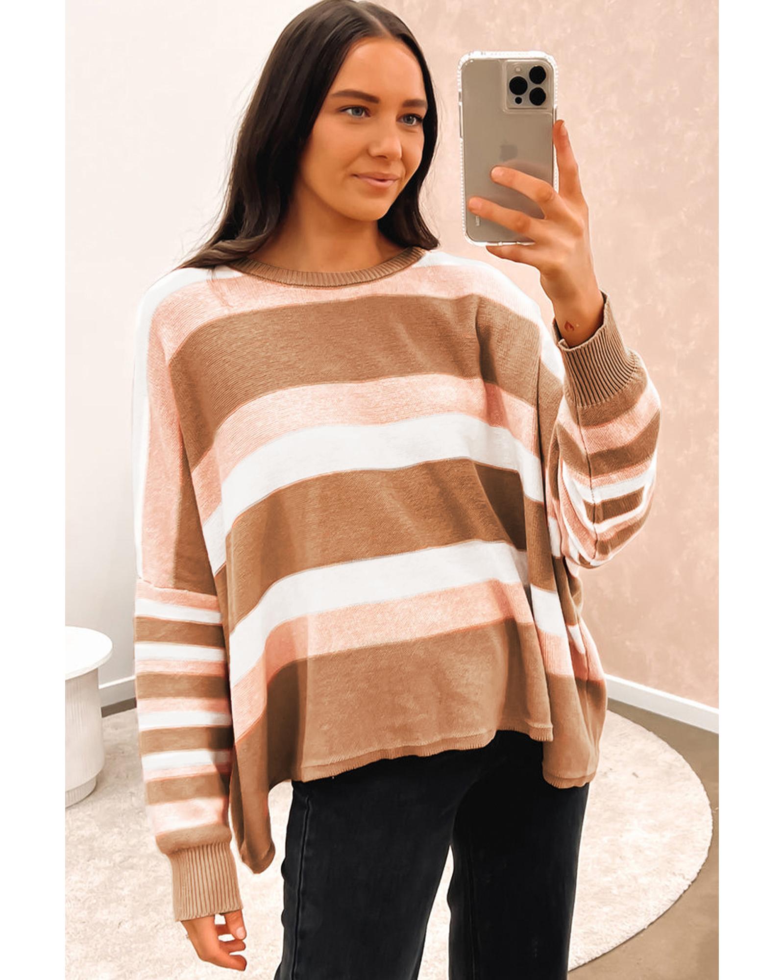 Multicolour Striped Knit Drop Shoulder Loose Sweater – L