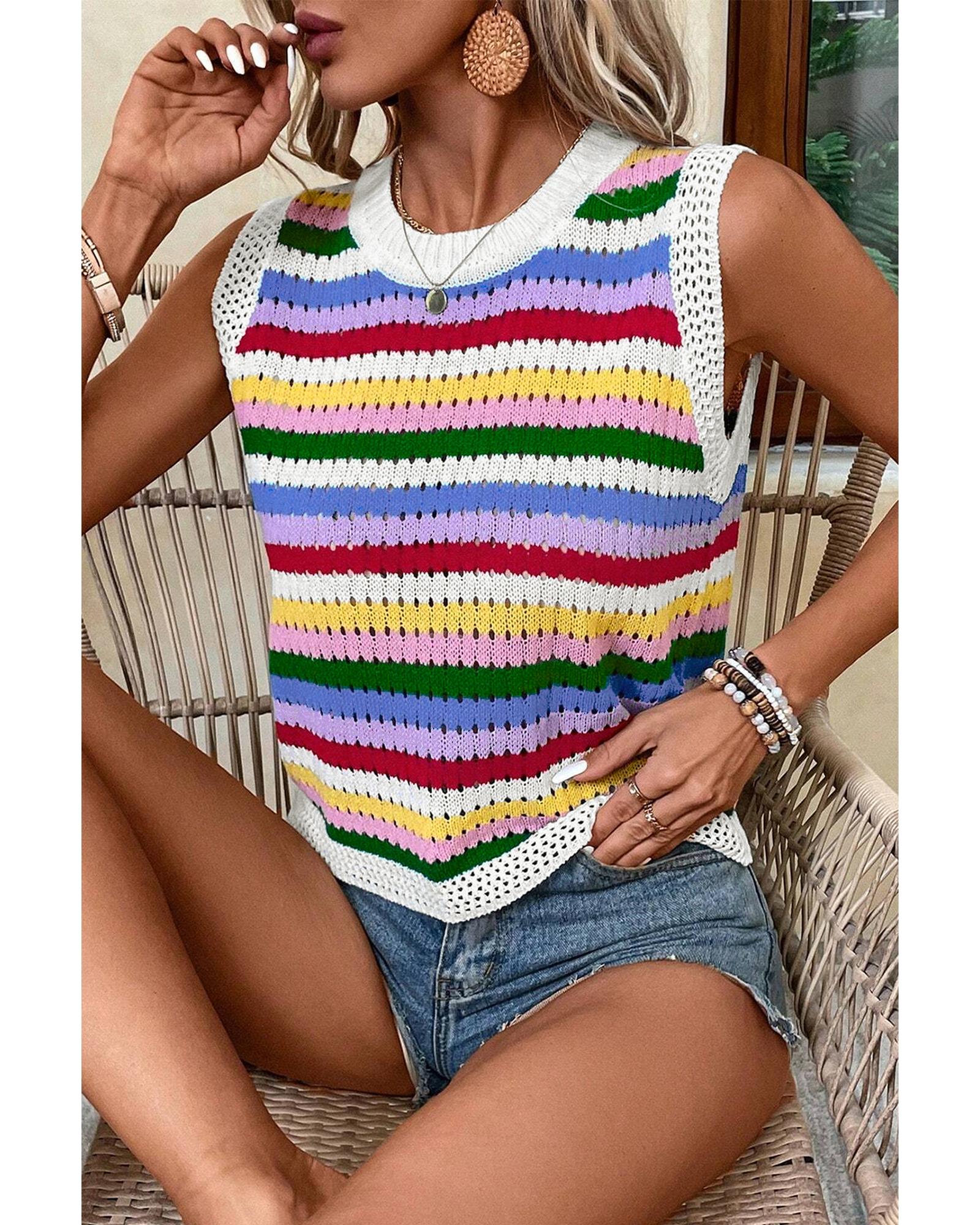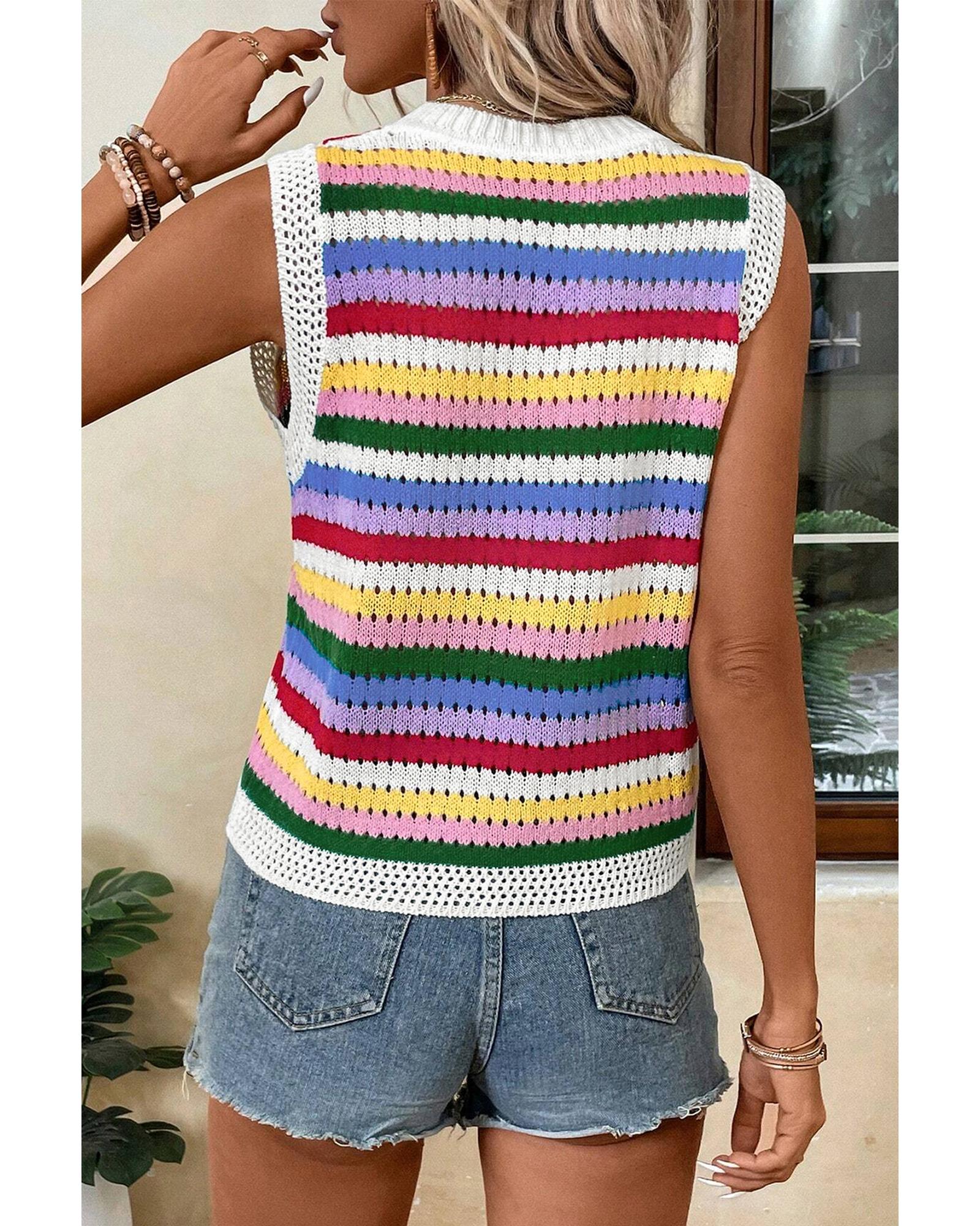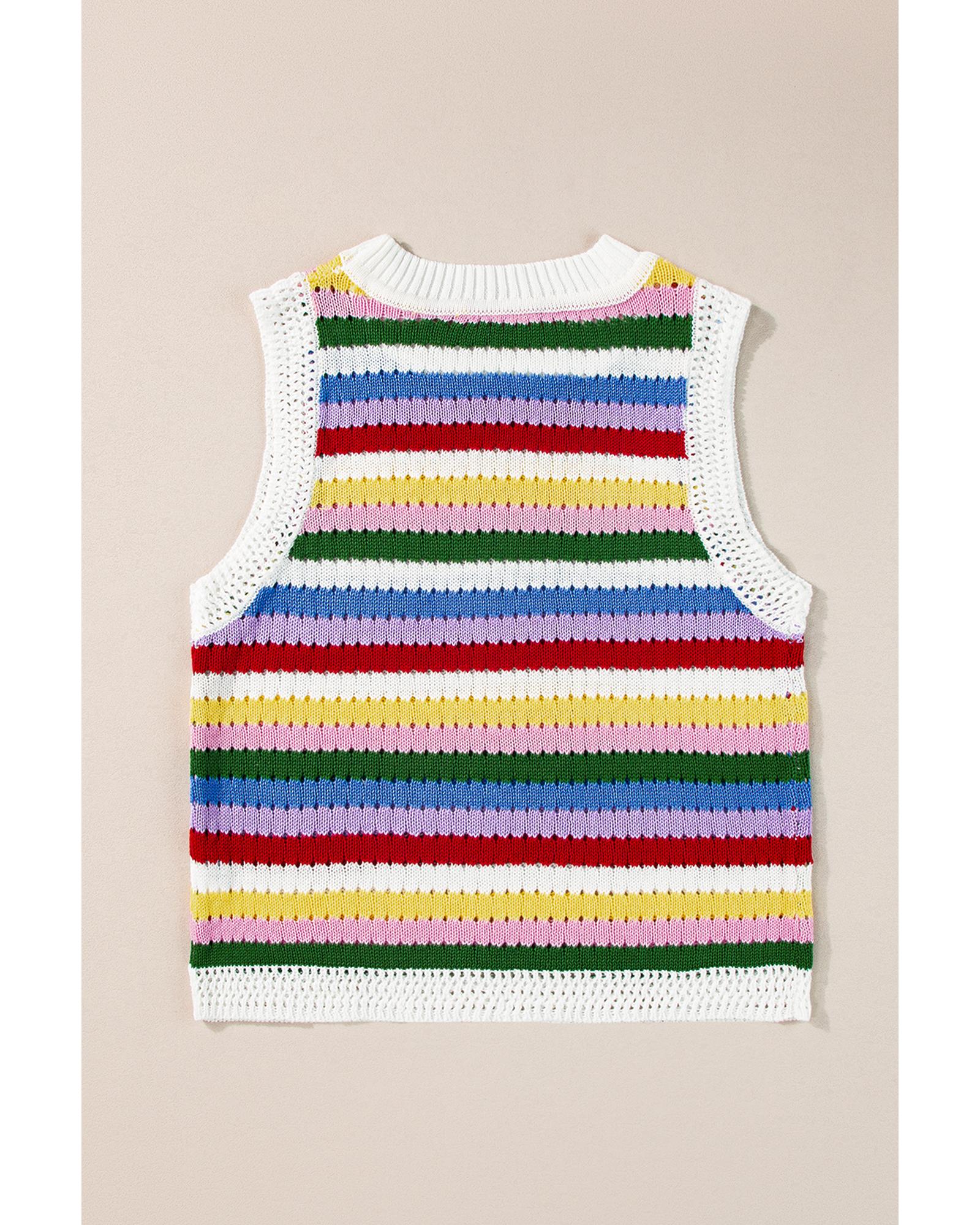 Multicolour Striped Knitted Eyelet Slim Sweater Vest – M