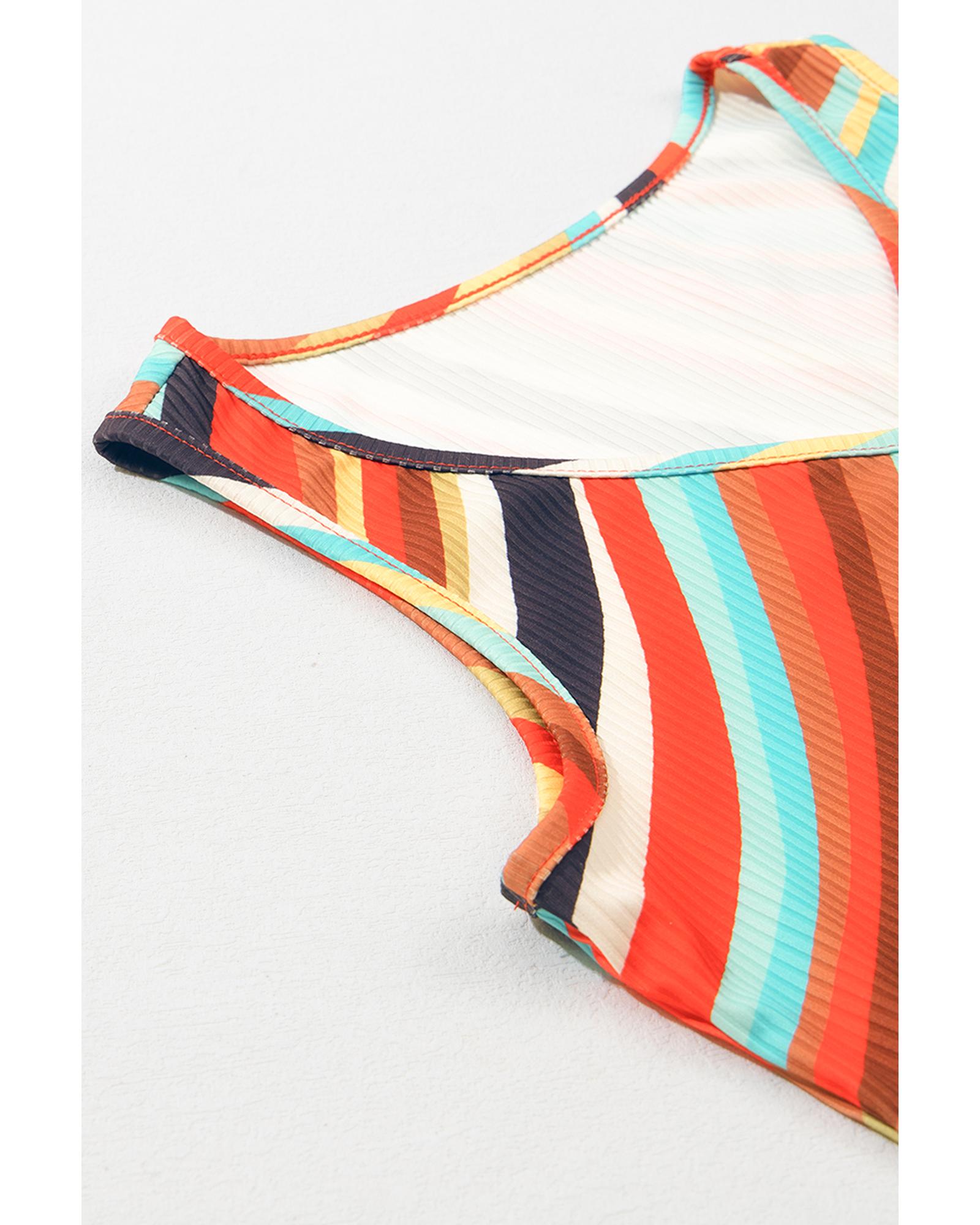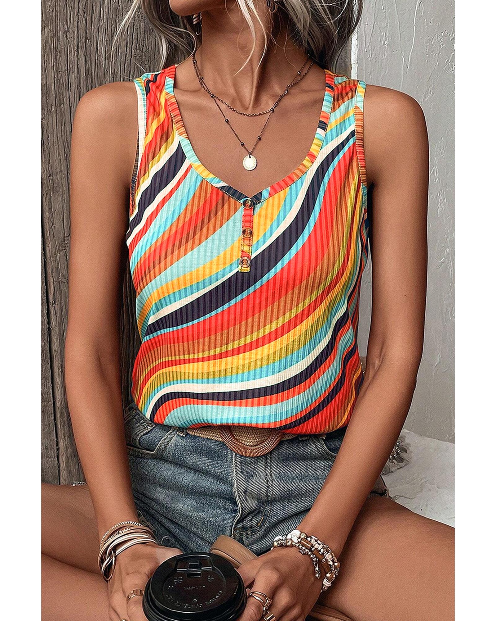 Multicolour Wavy Striped Buttoned V Neck Tank Top – S