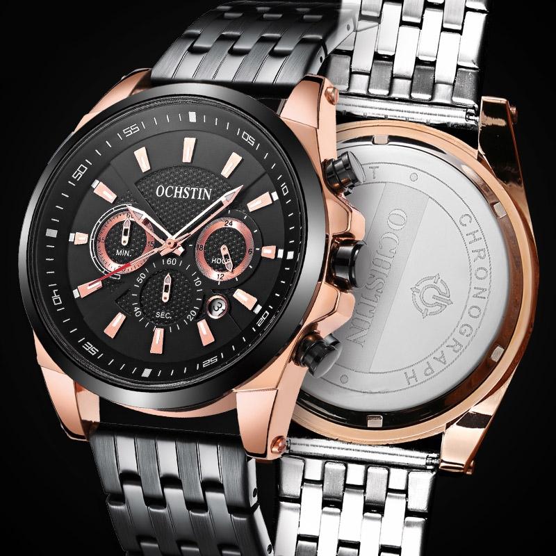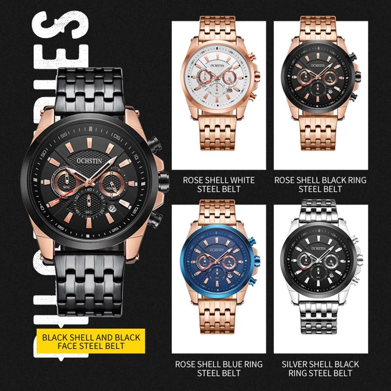 Multifunctional Steel Strap Men Watch – Fashionable Quartz – Rose Gold Black