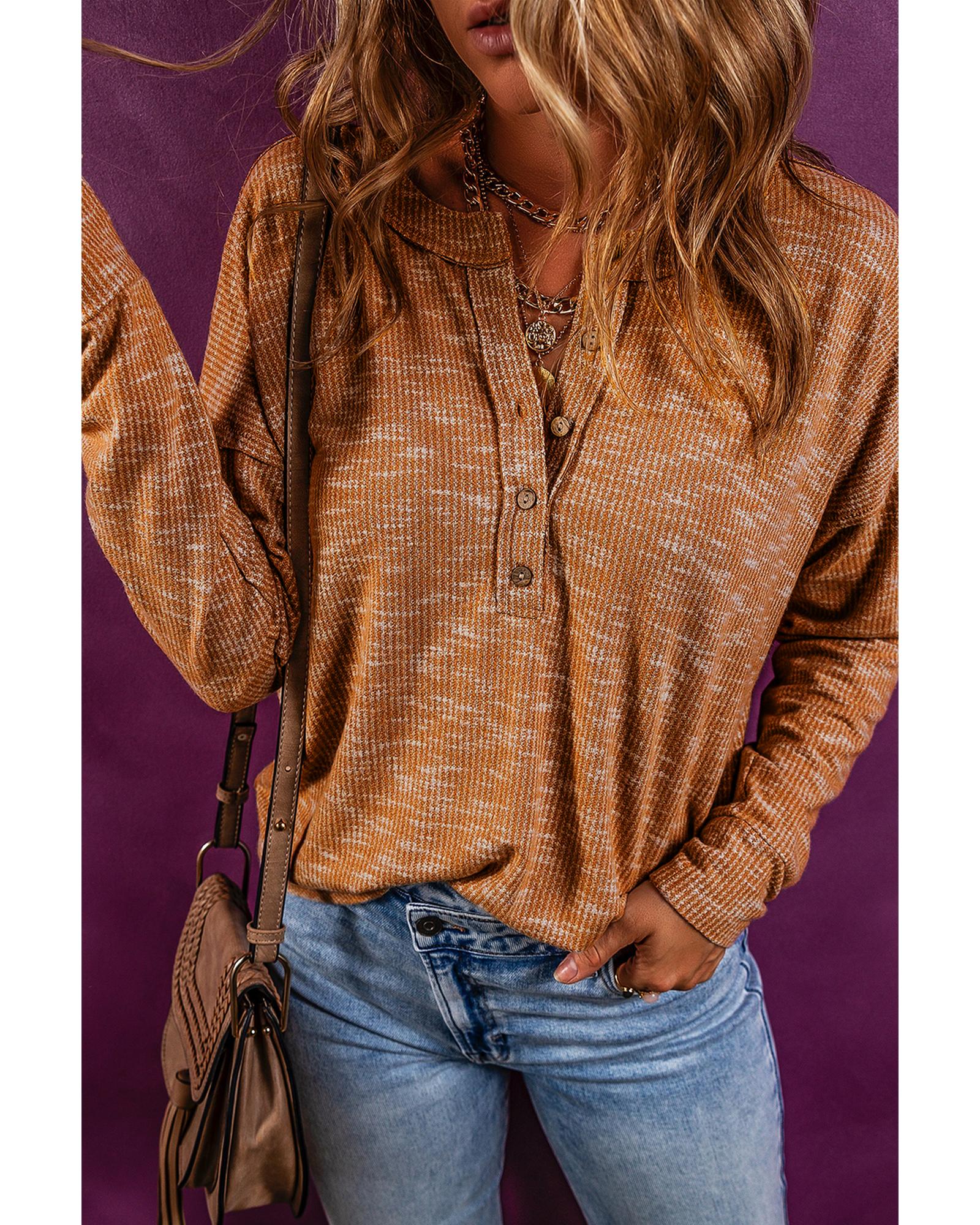 Mustard Rib Knit Drop Shoulder Long Sleeve Henley Top – S