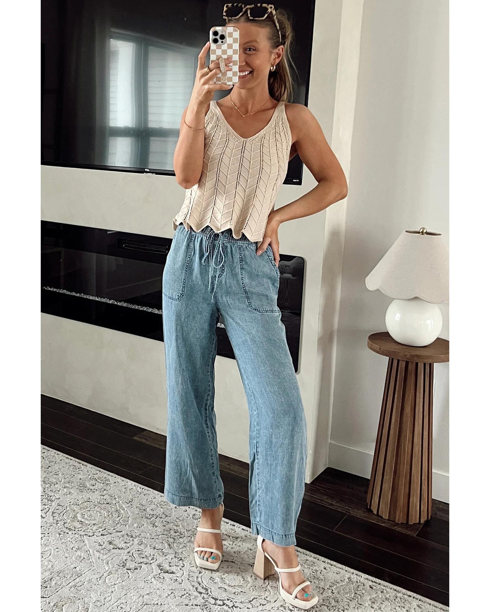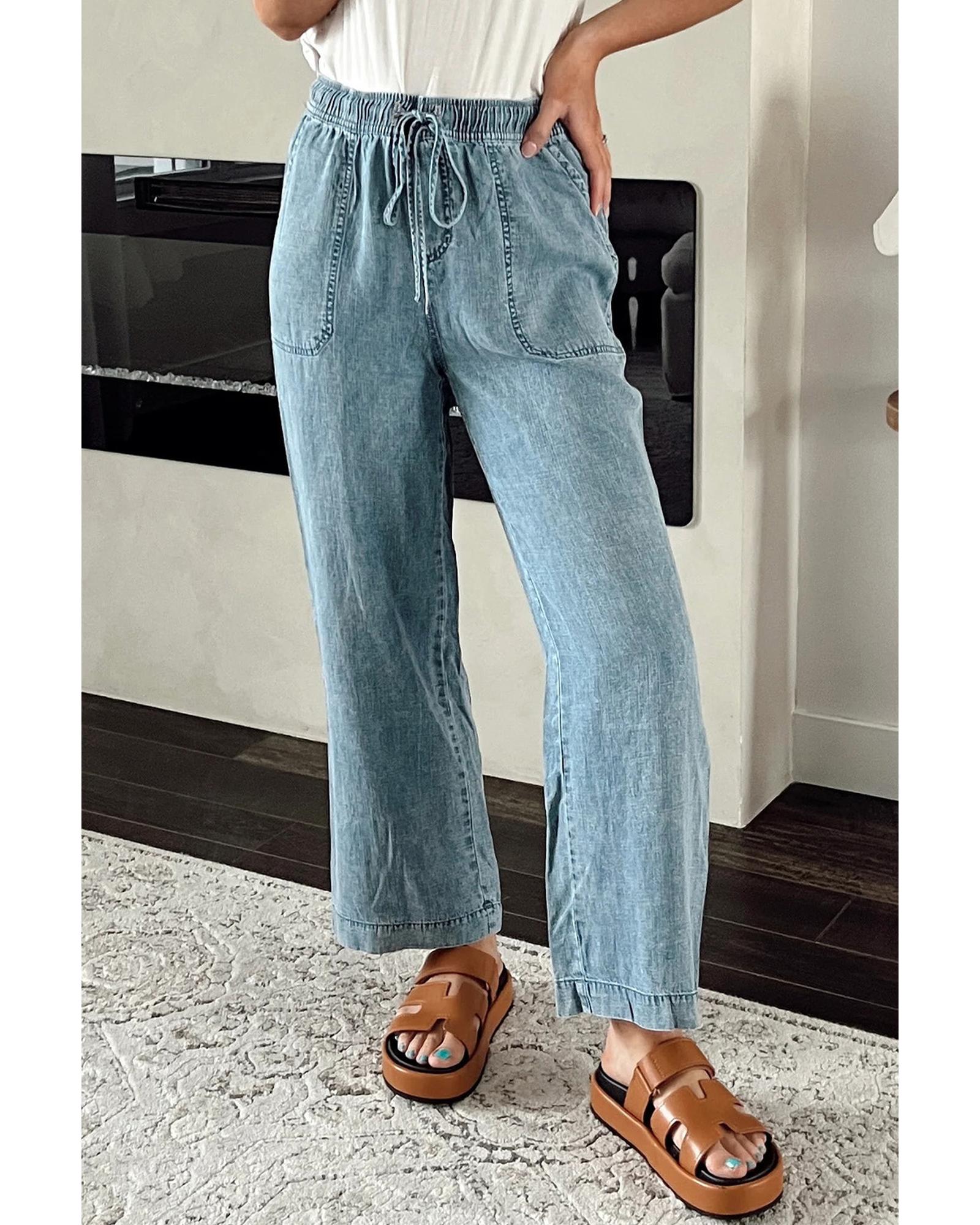 Myosotis Mineral Wash Drawstring Waist Loose Straight Denim Pants - 8 US