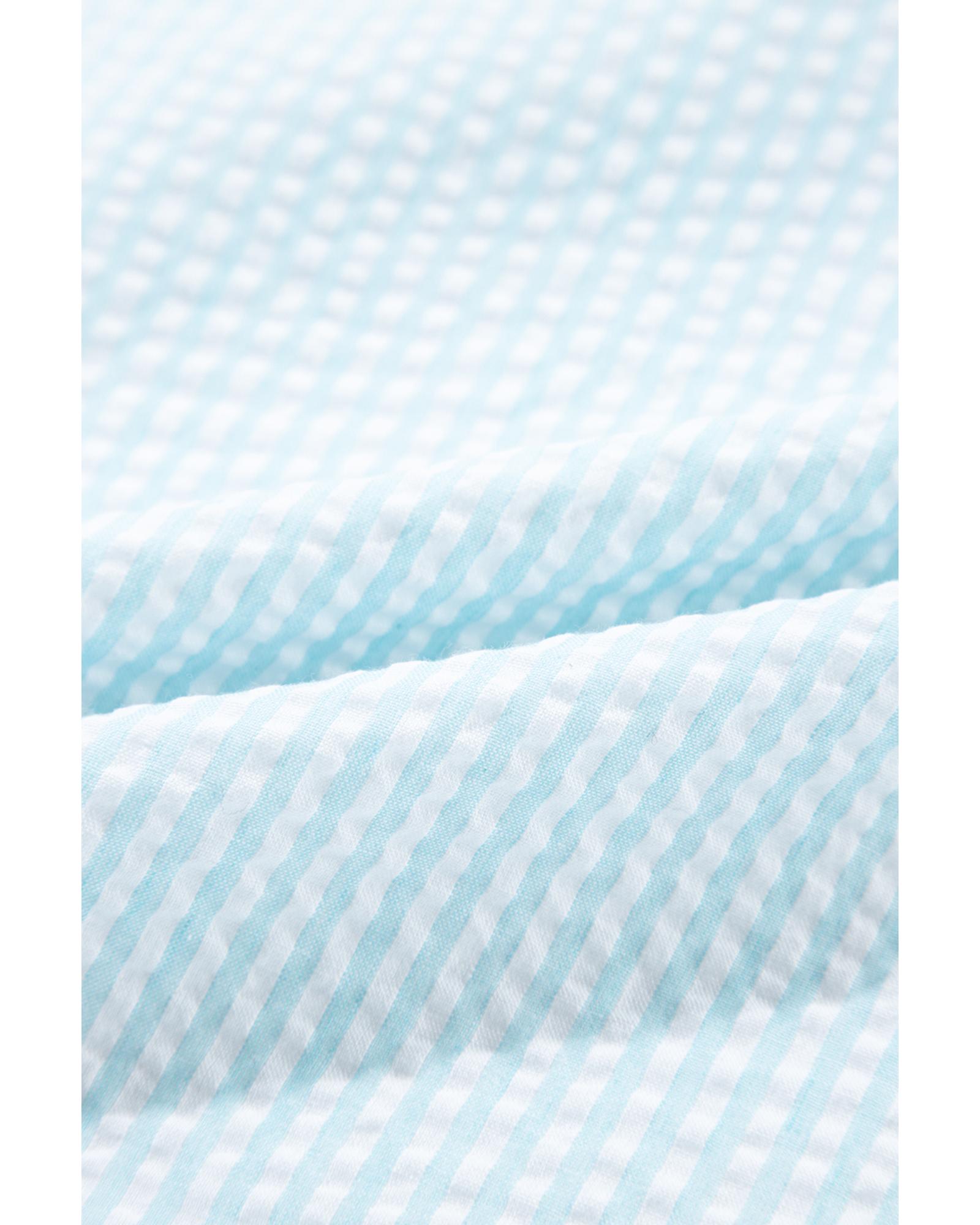 Myosotis Seersucker Ruffled Puff Sleeve Stand Neck Mini Dress – XL