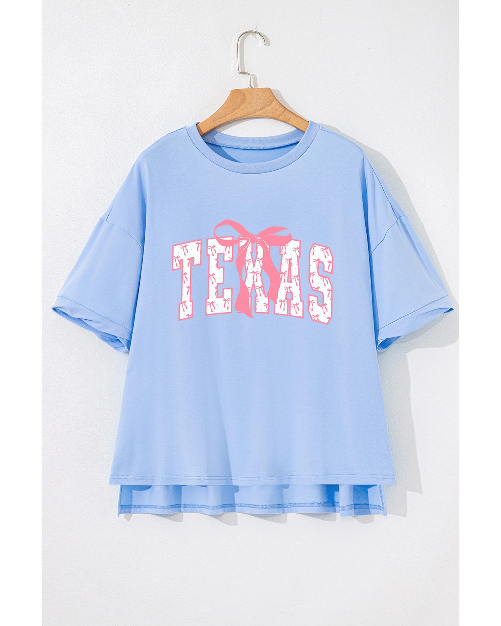 Myosotis TEXAS Bow Graphic Half Sleeve Drop Shoulder Loose Tee – M