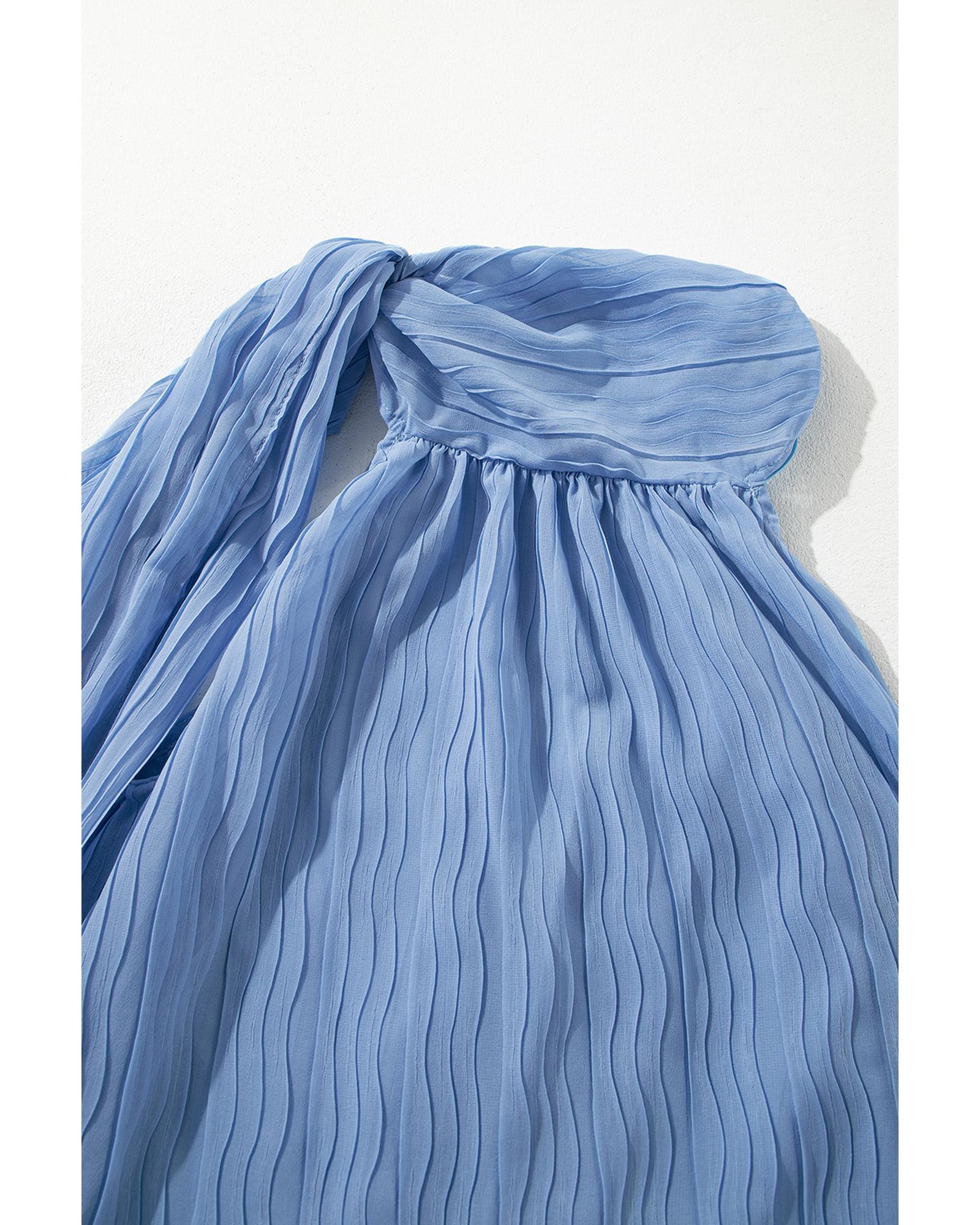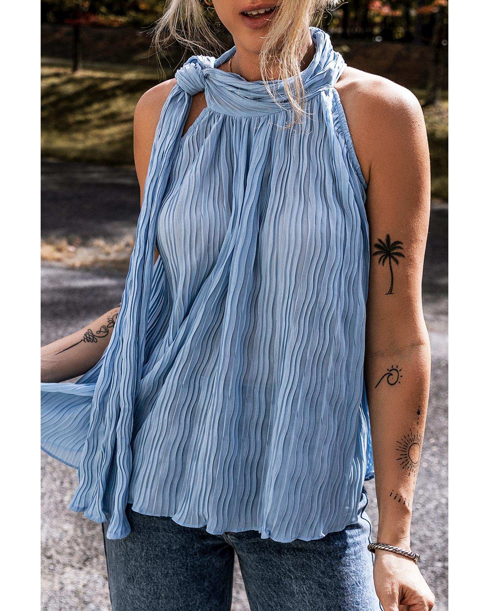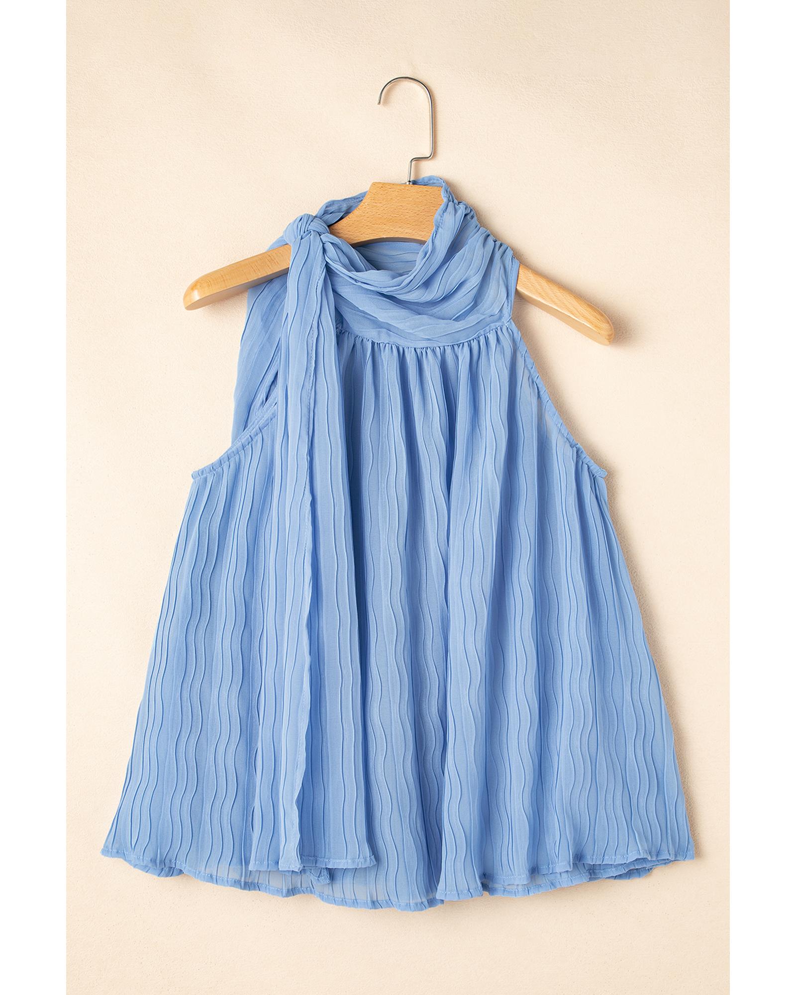 Myosotis Textured Pleated Tied Mock Neck Flowy Tank Top – M