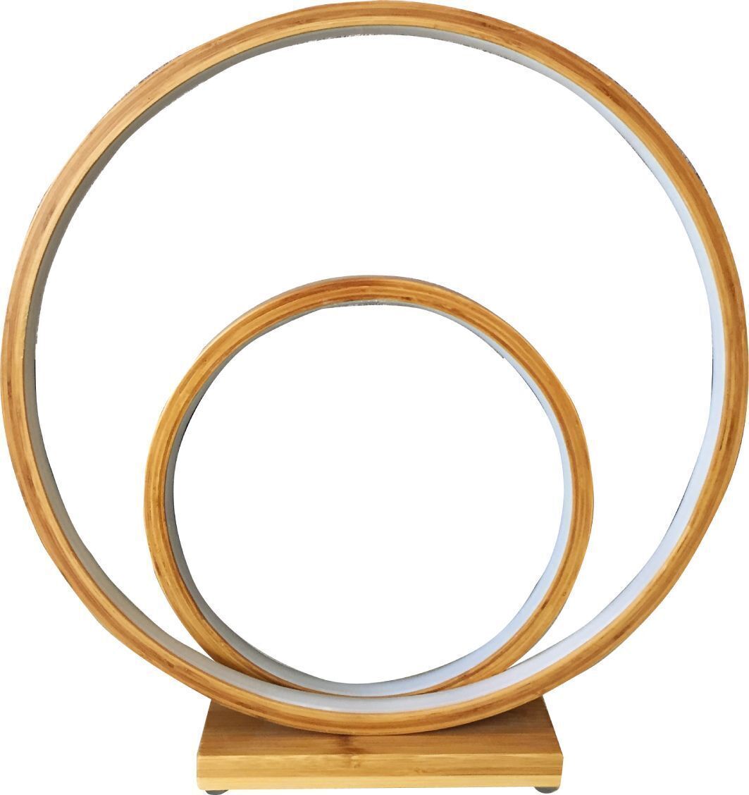 Natural Double Circle Bamboo LED Table Lamp Light Modern Scandi Minimal