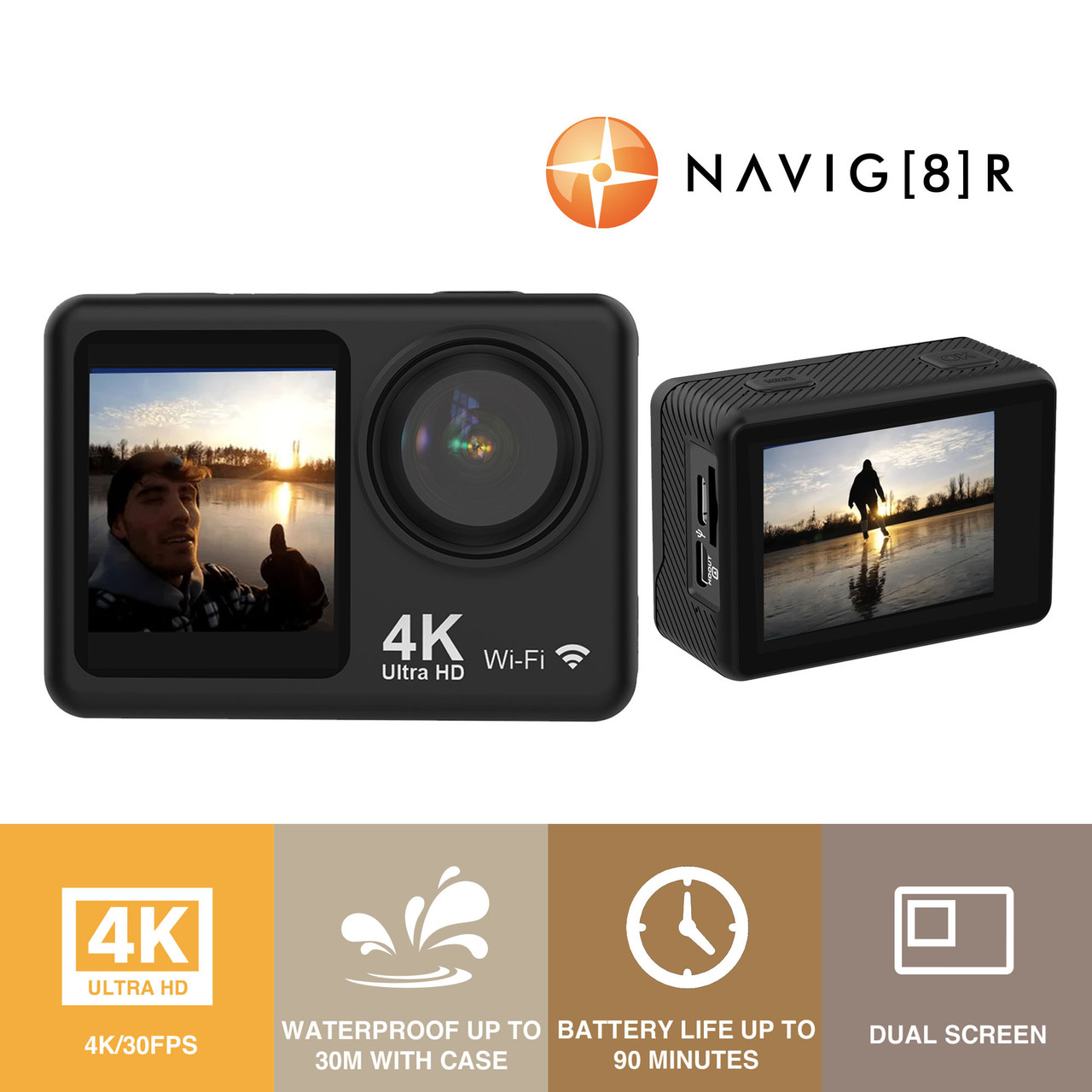 Navig8r 4K UHD Dual Screen Action Camera