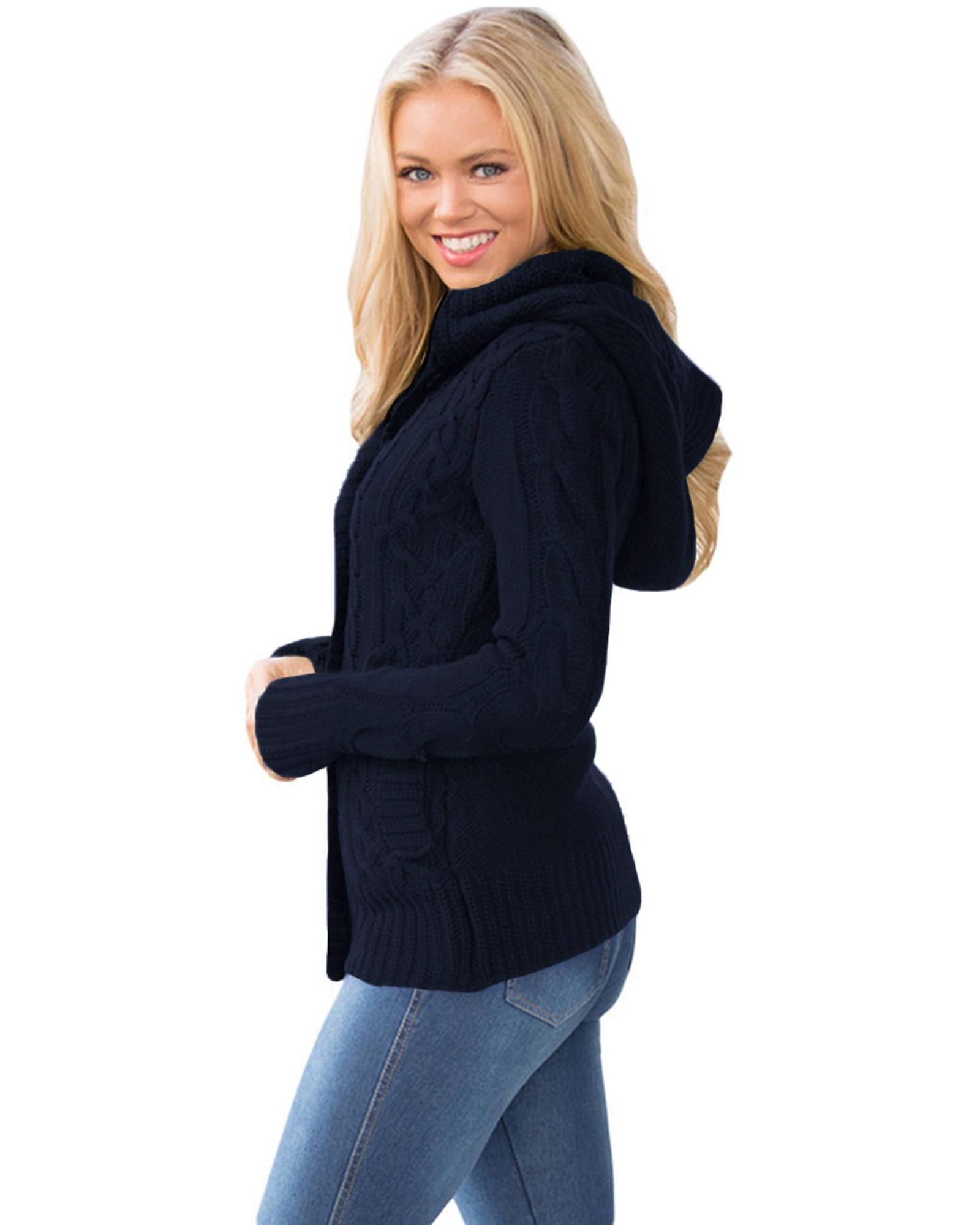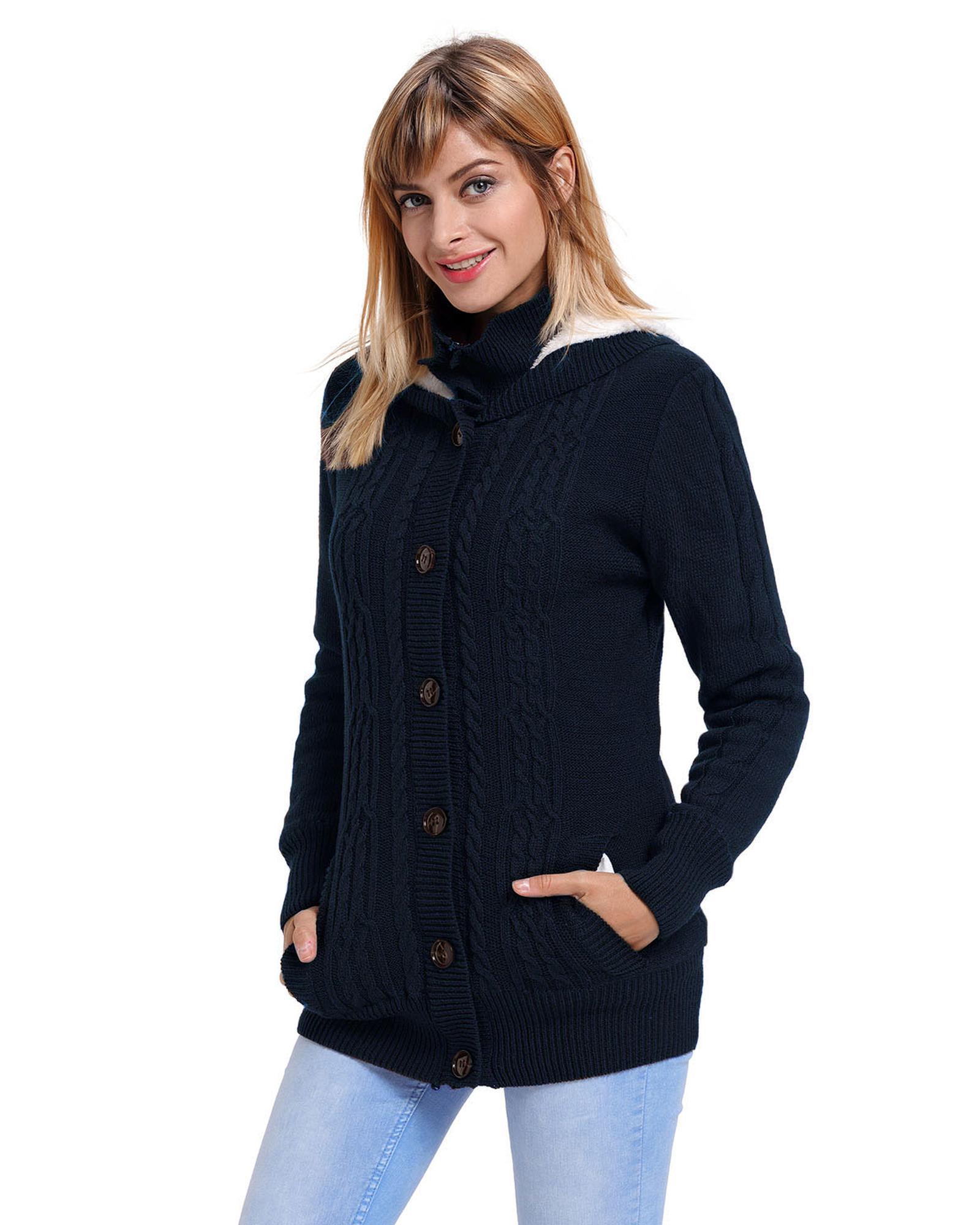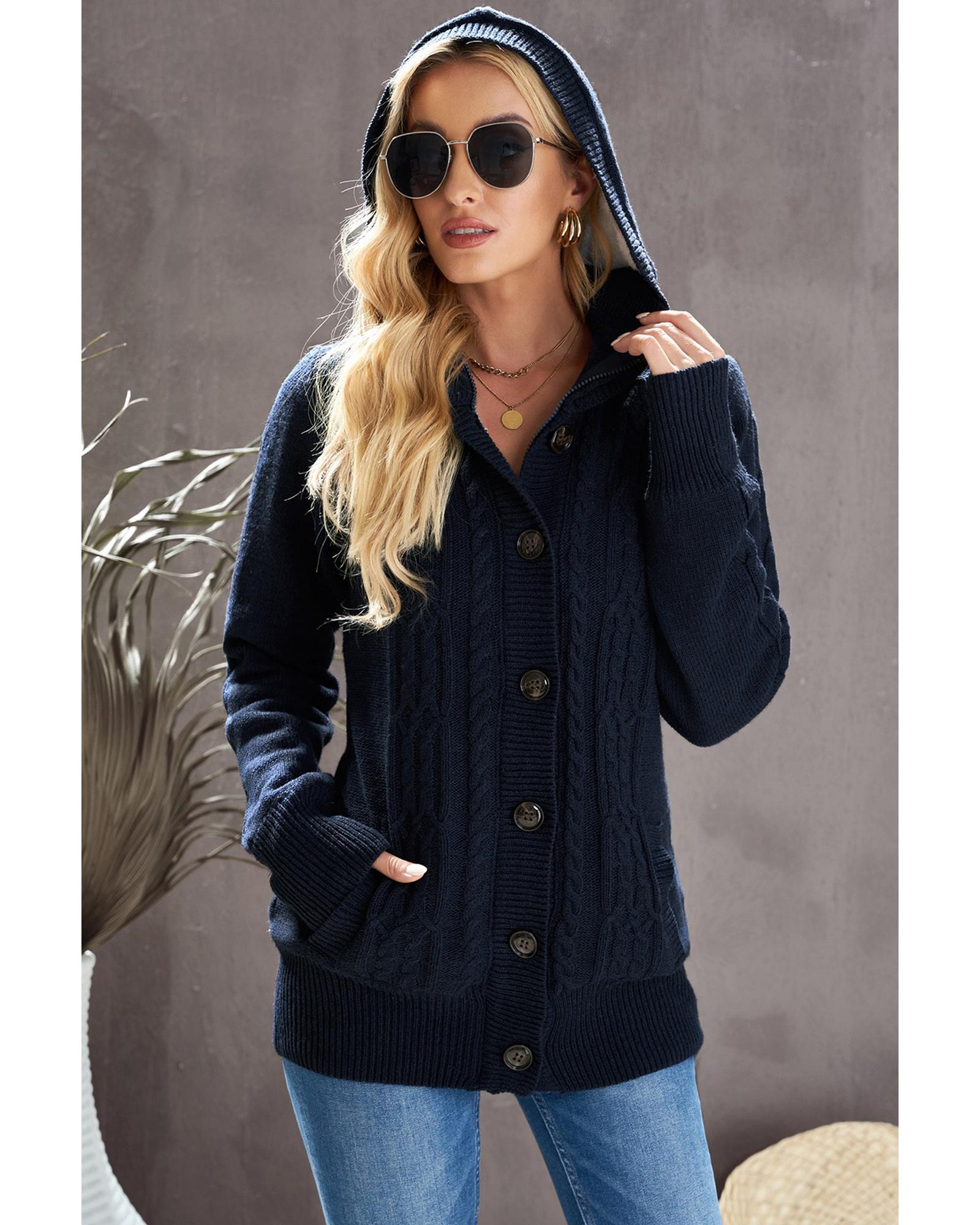 Navy Blue Long Sleeve Button-up Hooded Cardigans – S