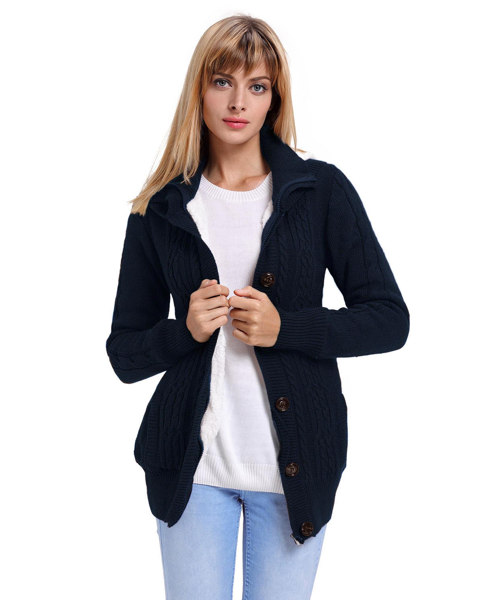 - Stylish and versatile navy blue cardigan