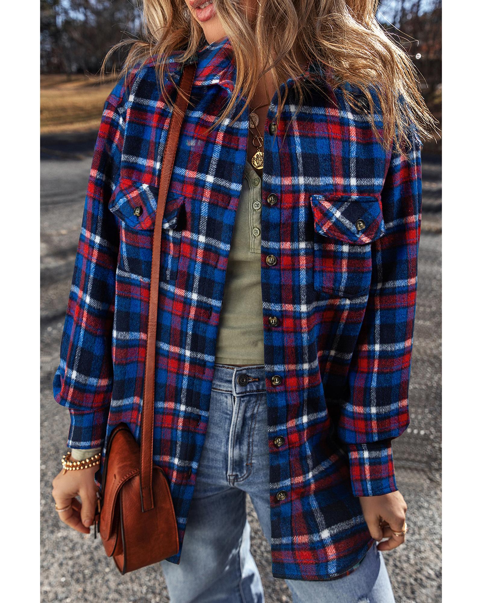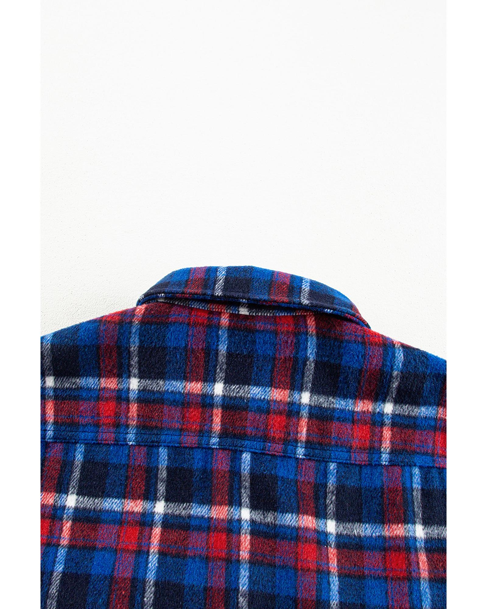 Navy Blue Plaid Flap Pocket Button Up Shacket – L