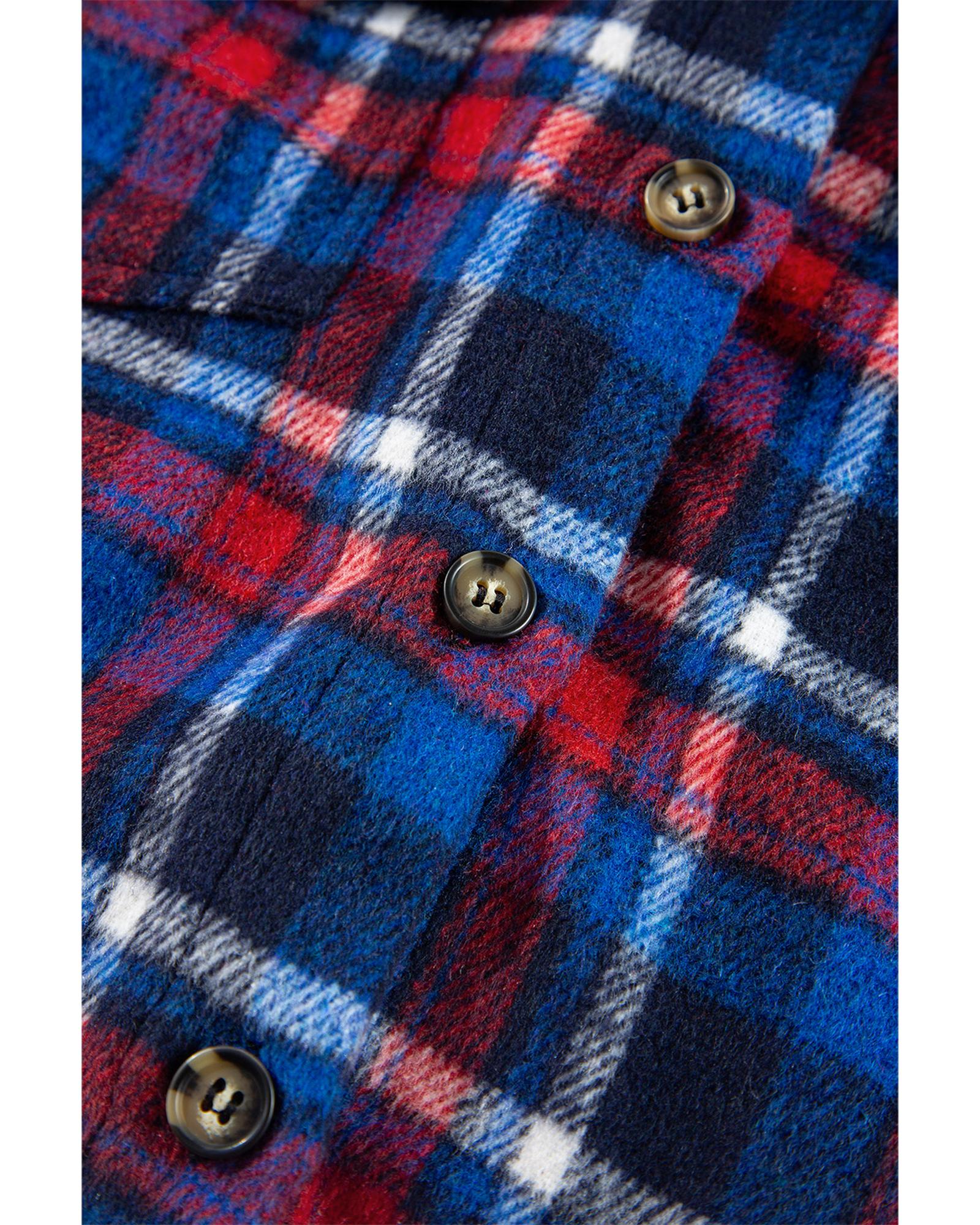Navy Blue Plaid Flap Pocket Button Up Shacket - M