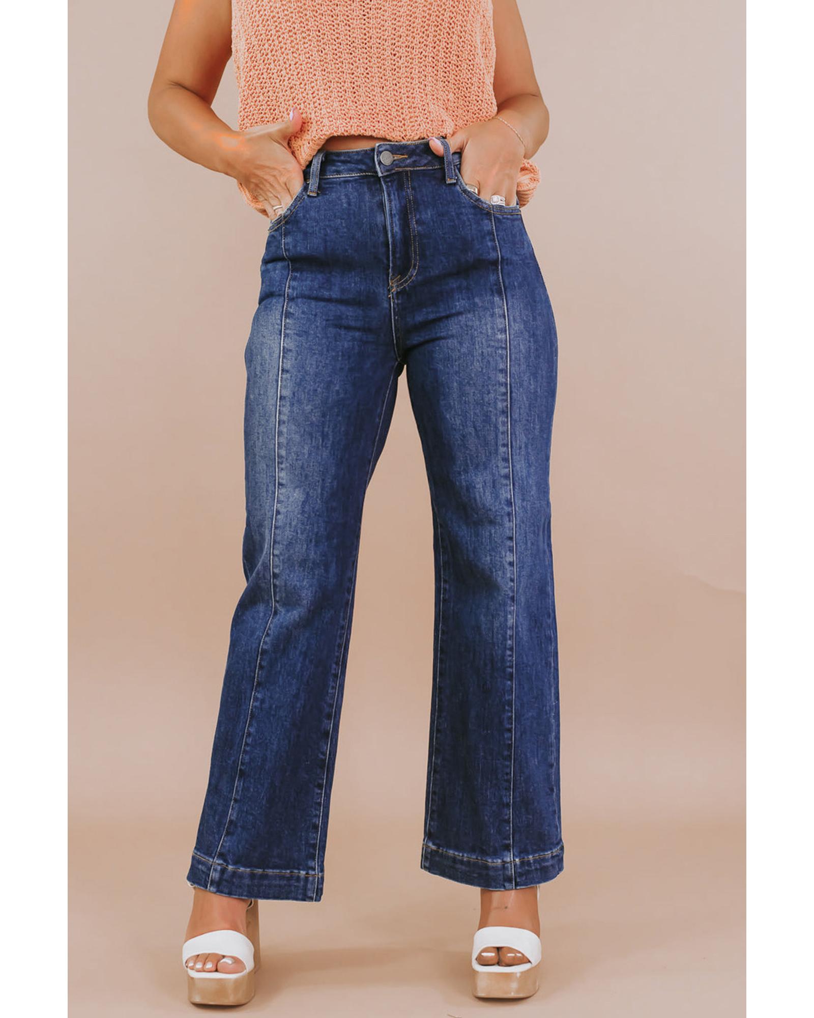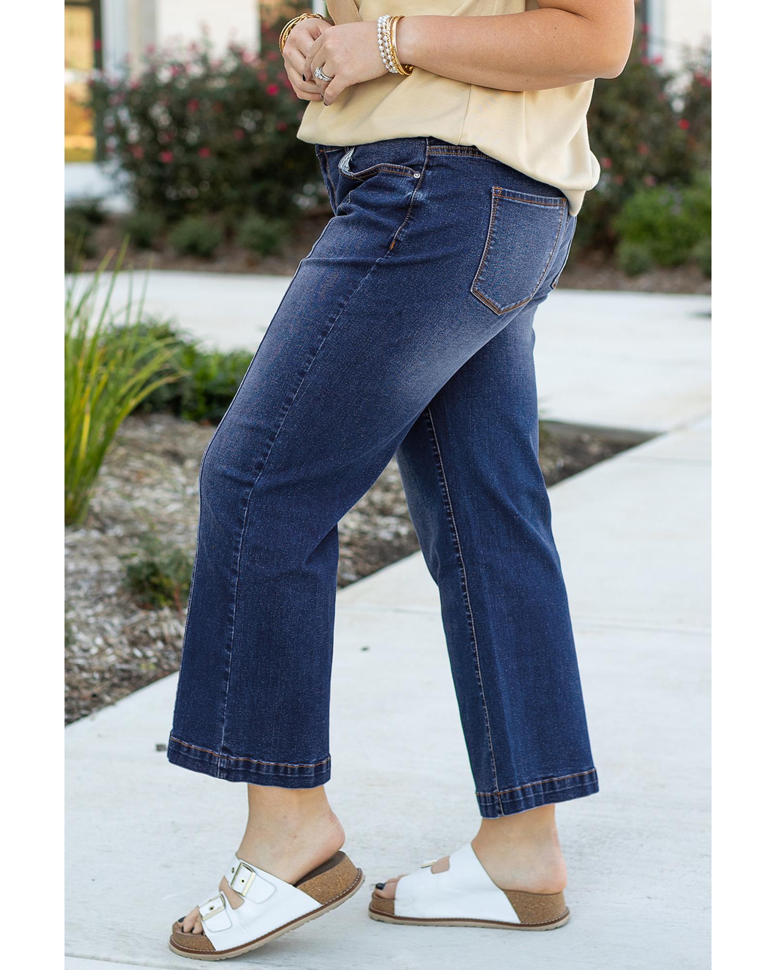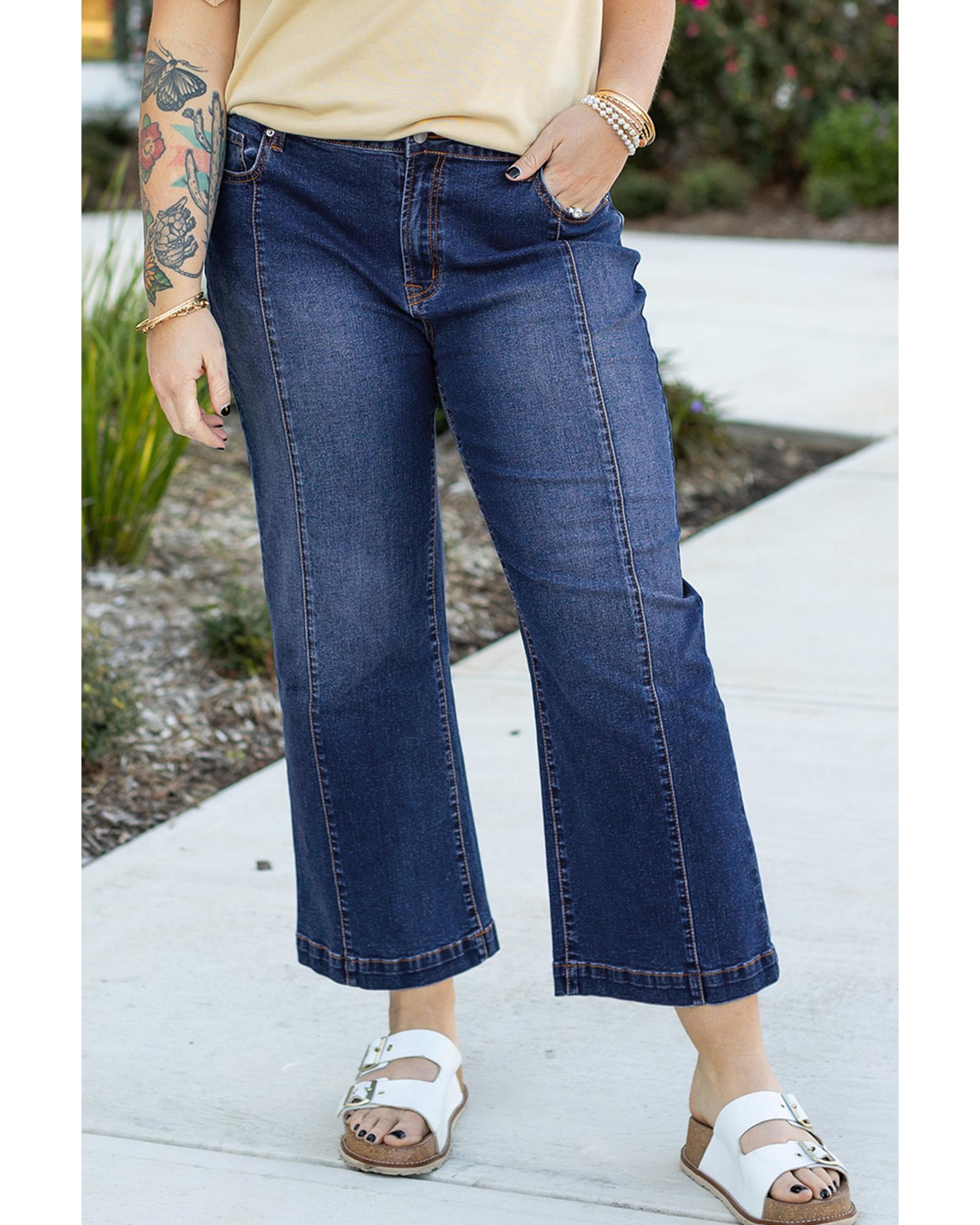 Navy Blue Plus Size Seamed Wide Leg High Waist Jeans – 4X