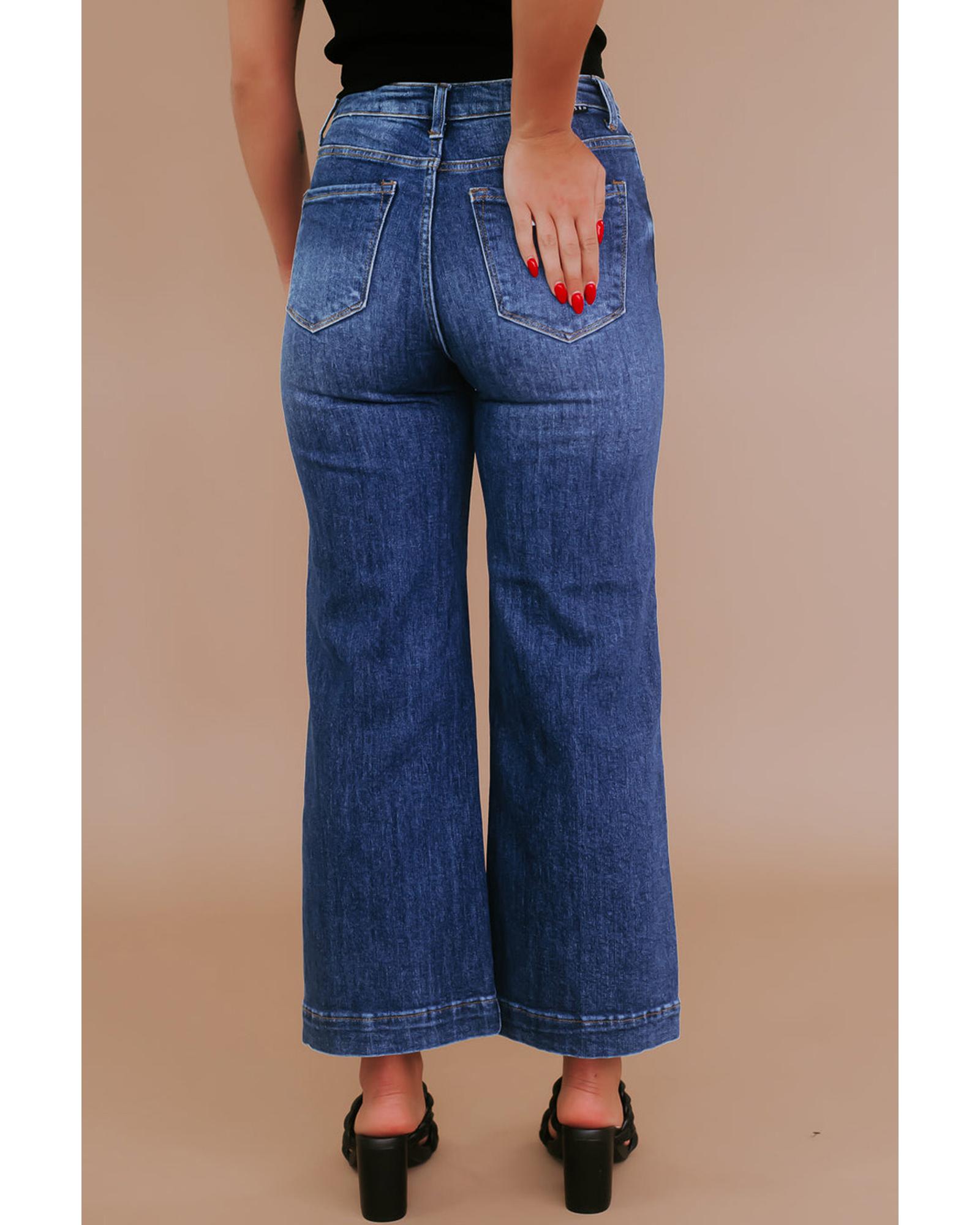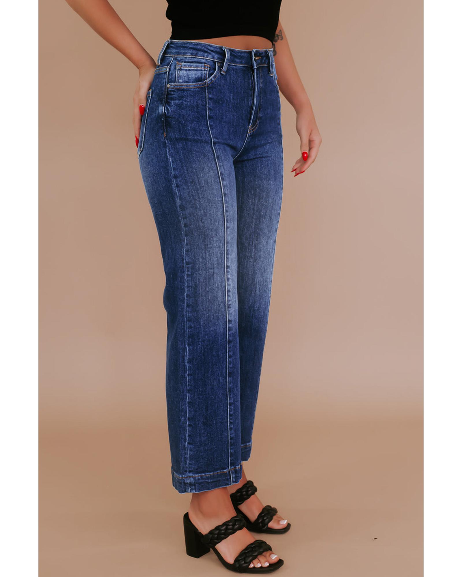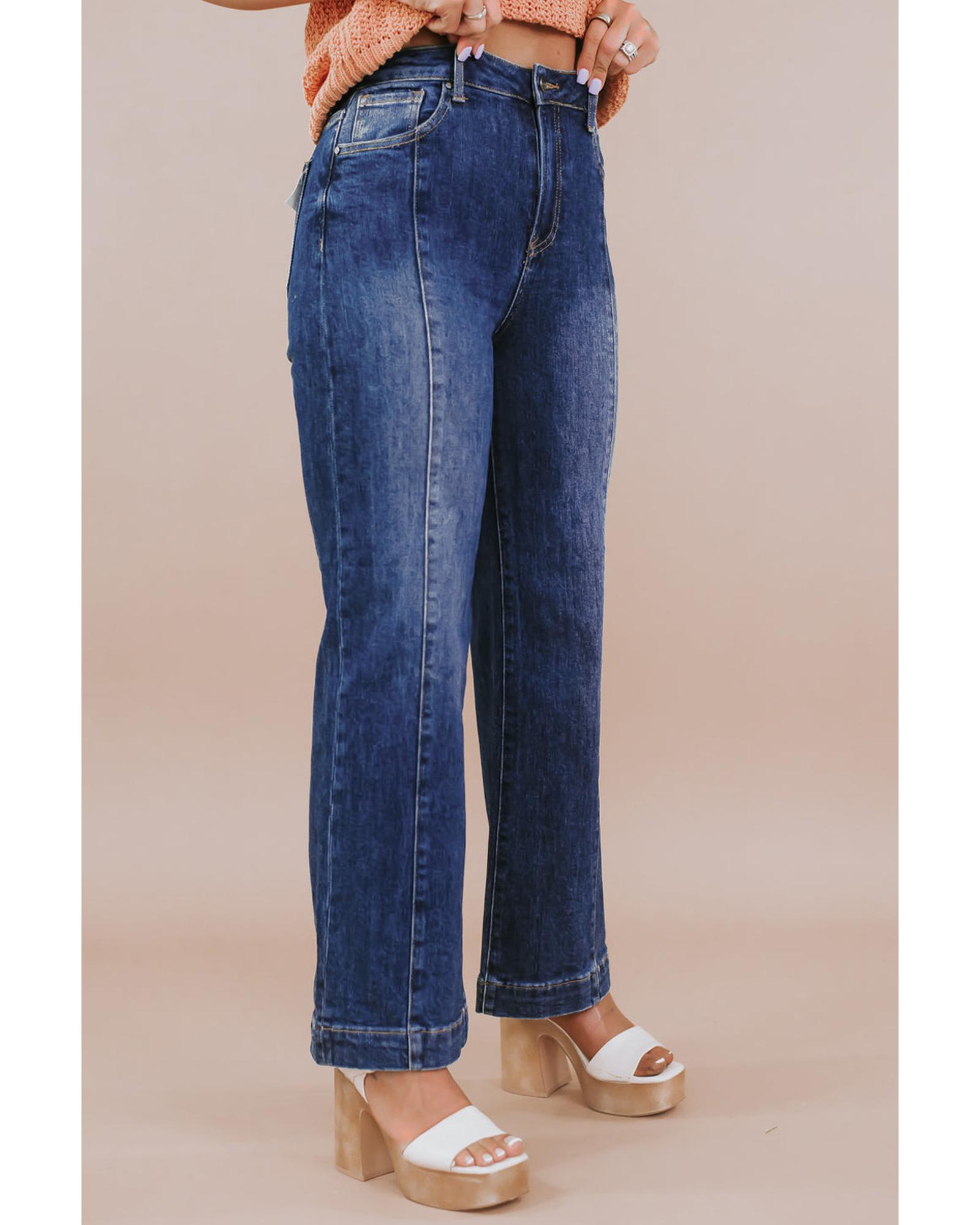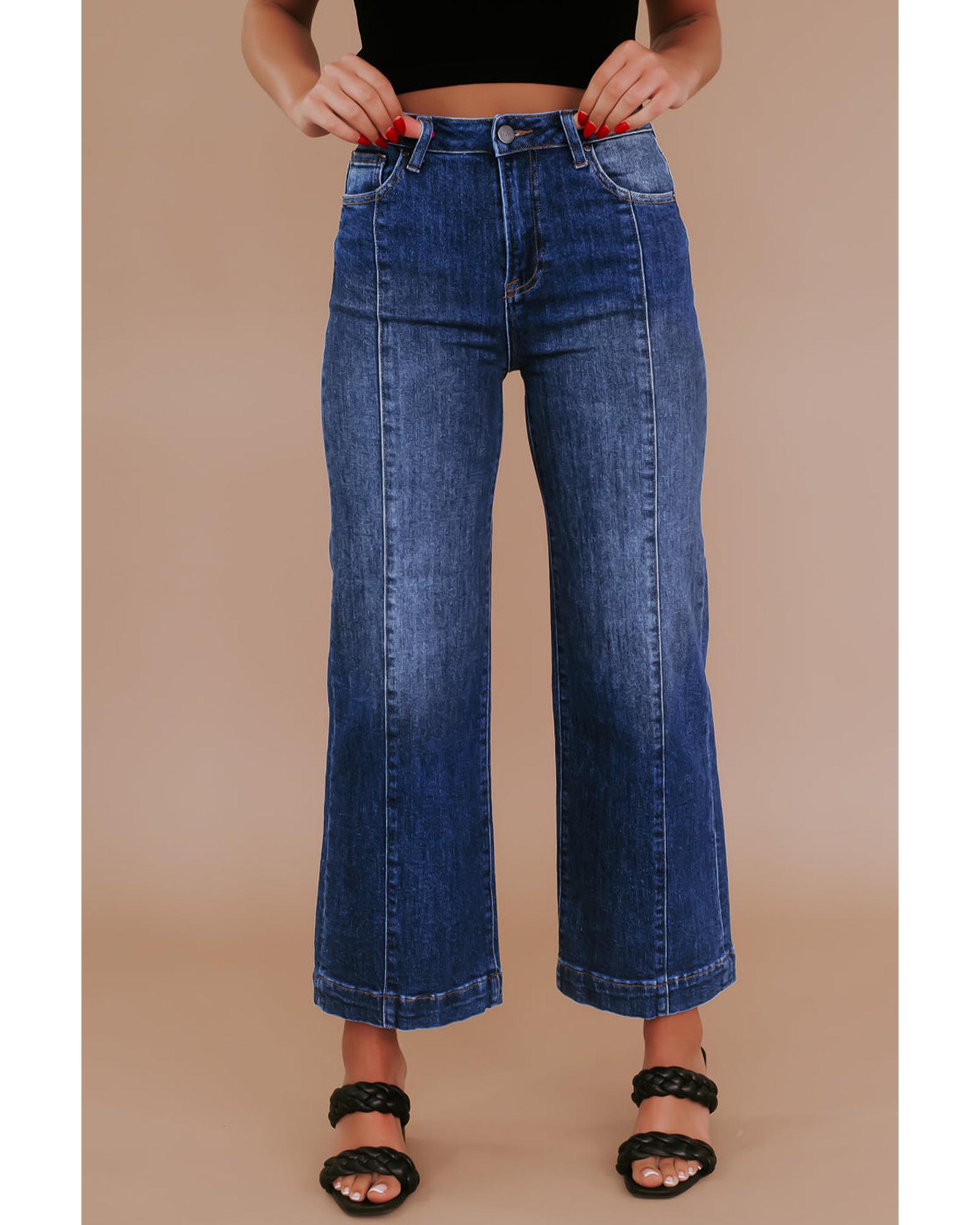 Navy Blue Plus Size Seamed Wide Leg High Waist Jeans – 4X