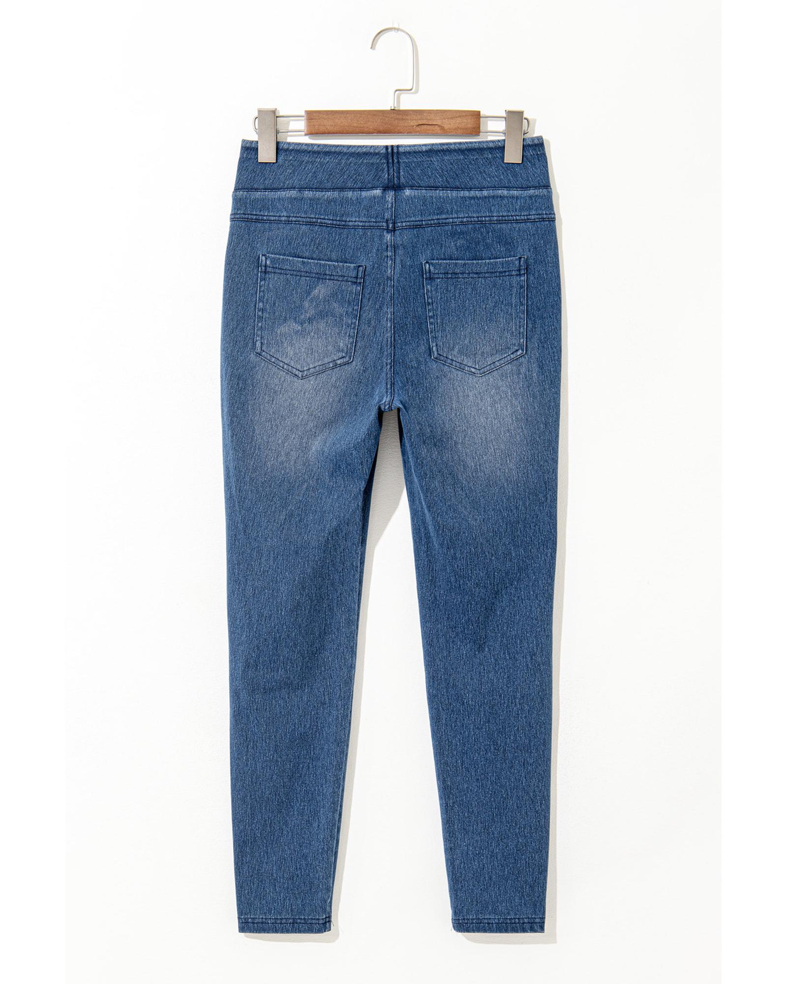 - Navy Blue Skinny Elastic Waist Ankle Length Mid Waist Jeggings with Pockets