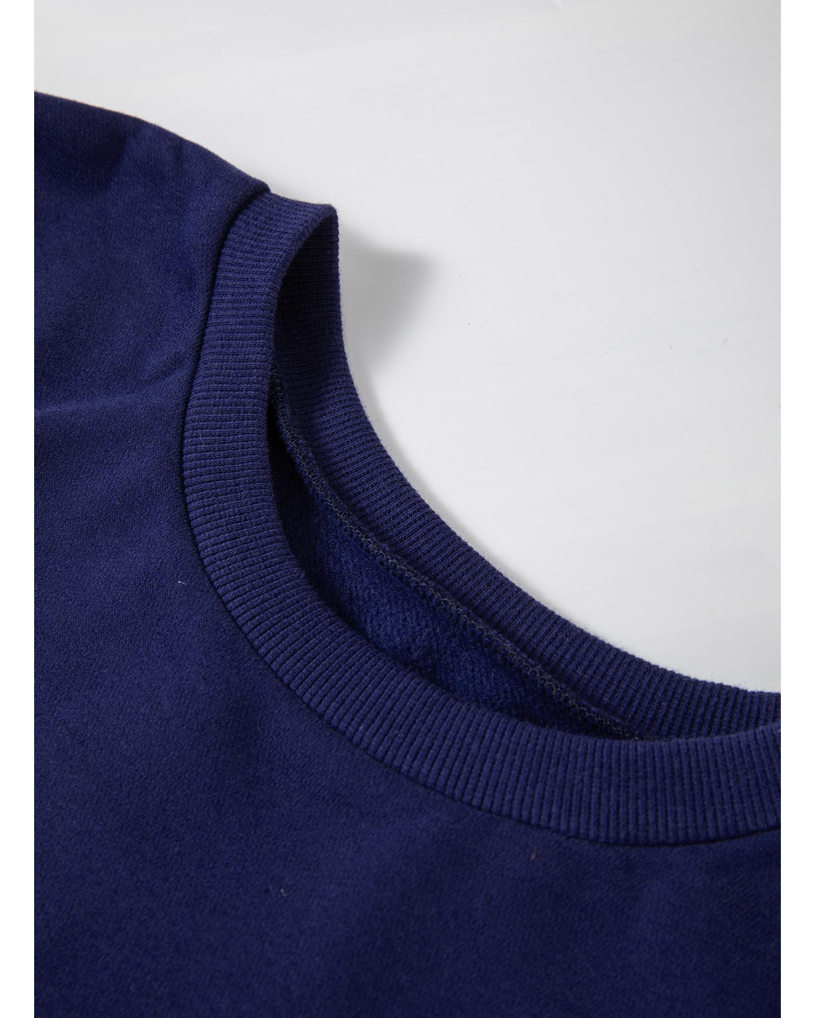 Navy Blue Solid Fleece Lined Drop Shoulder High Low Sweatshirt – M