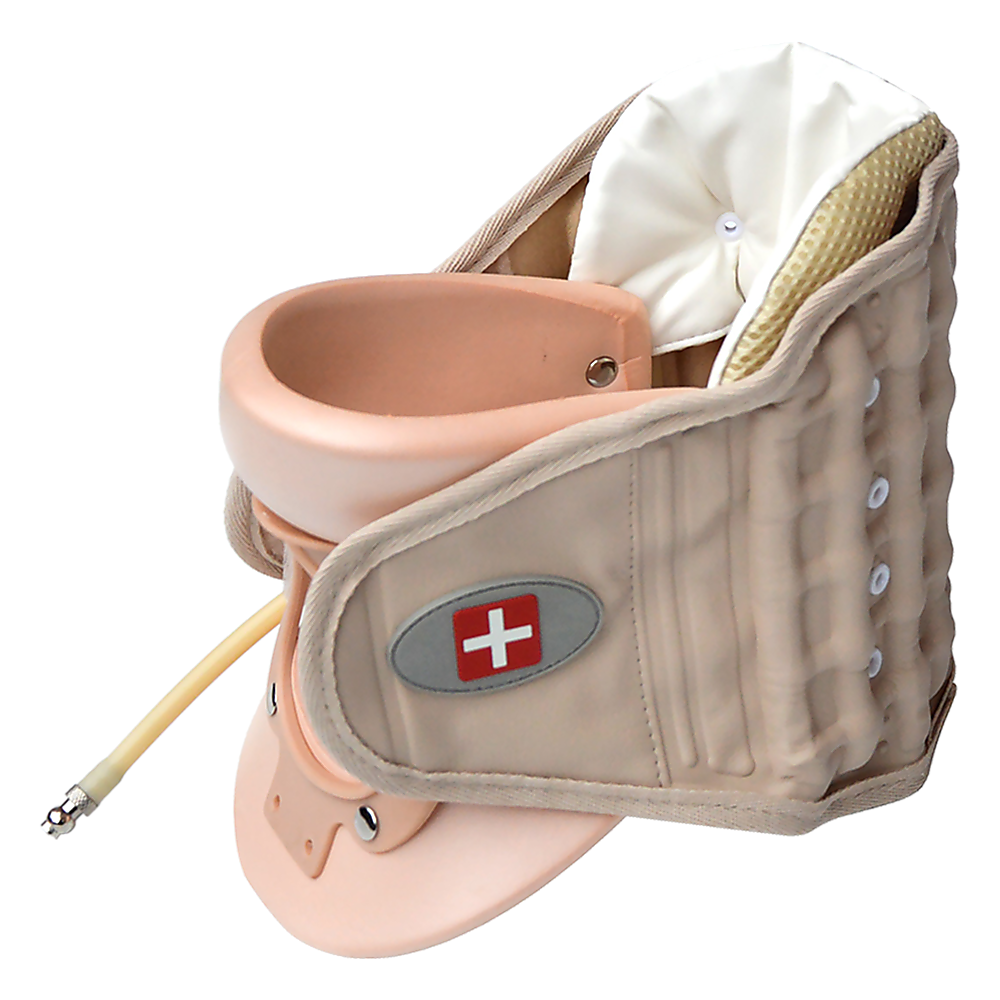 In an easily adjustable one-size-fits-all model, this cervical collar has a hand pump to provide just the right level of support.