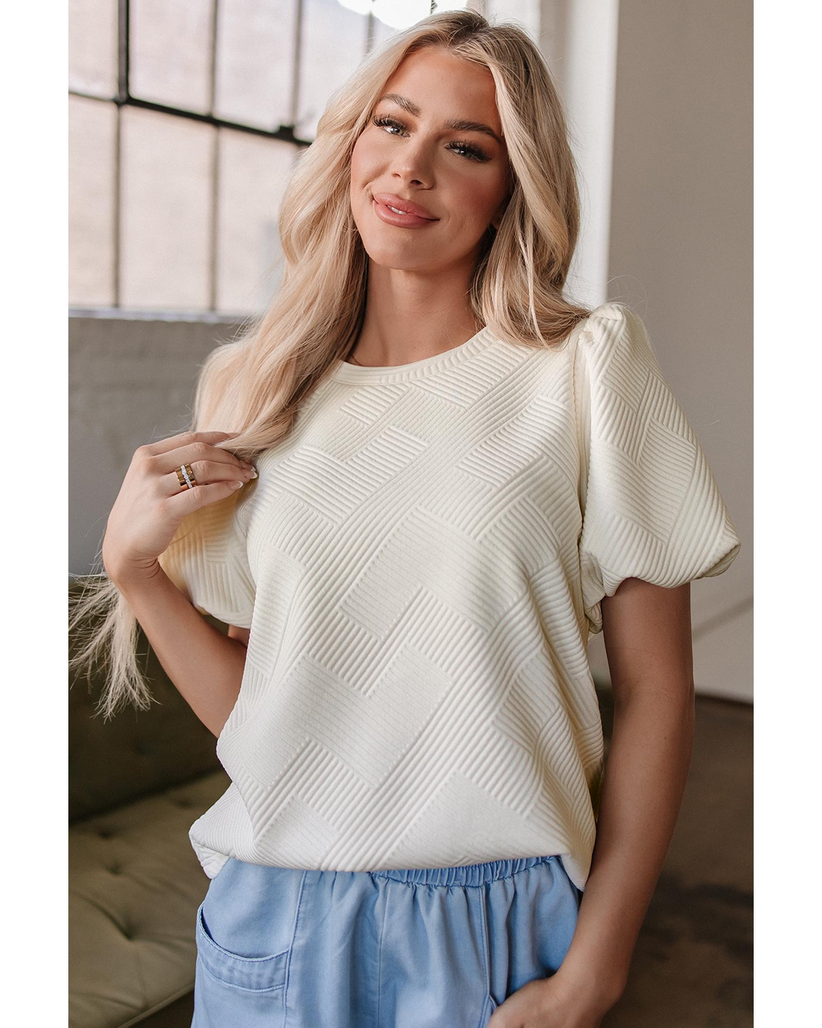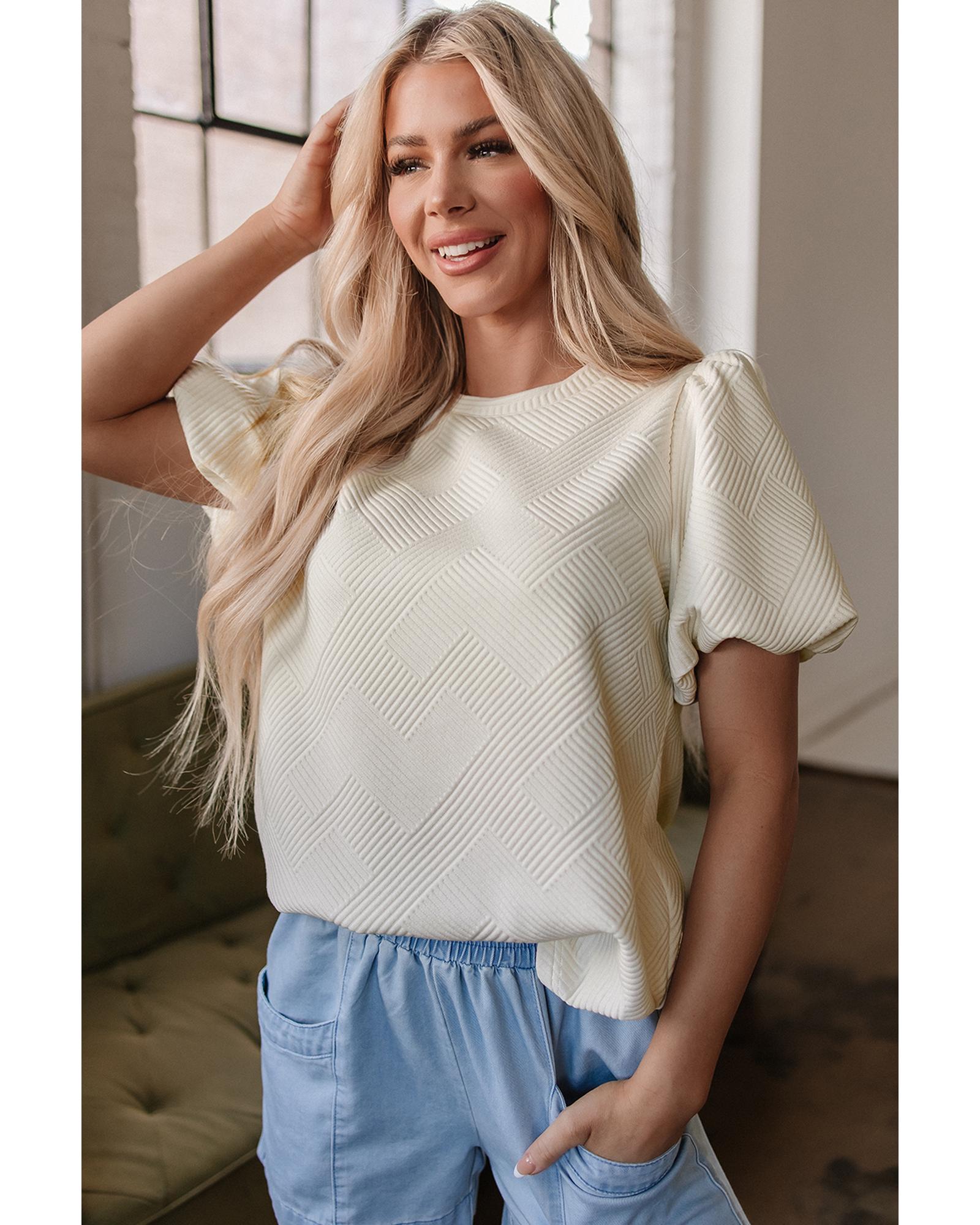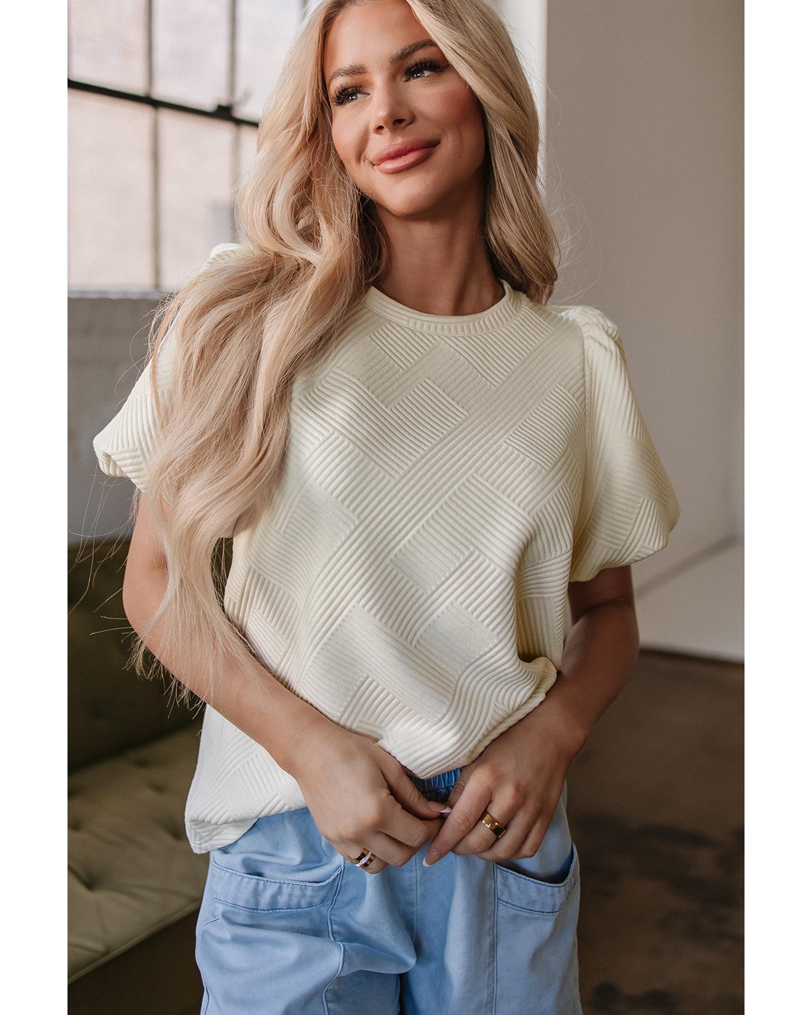 Oatmeal Textured Puff Sleeve T-shirt – M