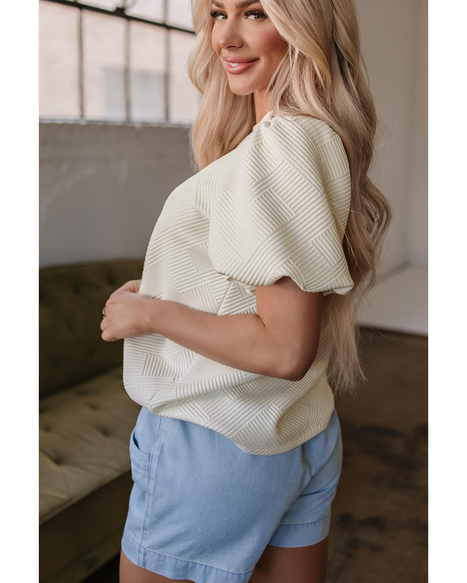Oatmeal Textured Puff Sleeve T-shirt – XL