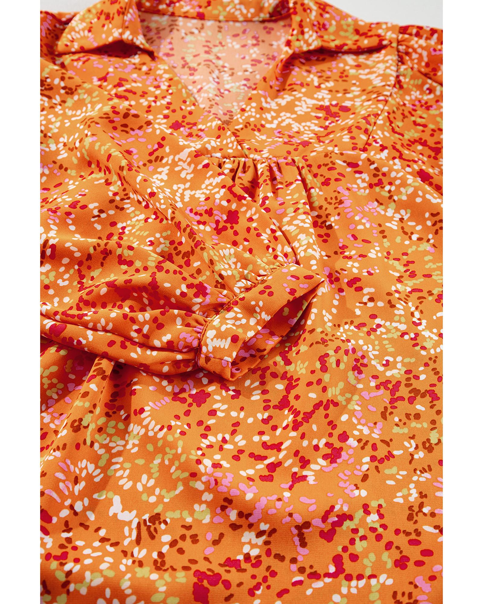 Orange Abstract Print Collared V Neck Babydoll Blouse – S