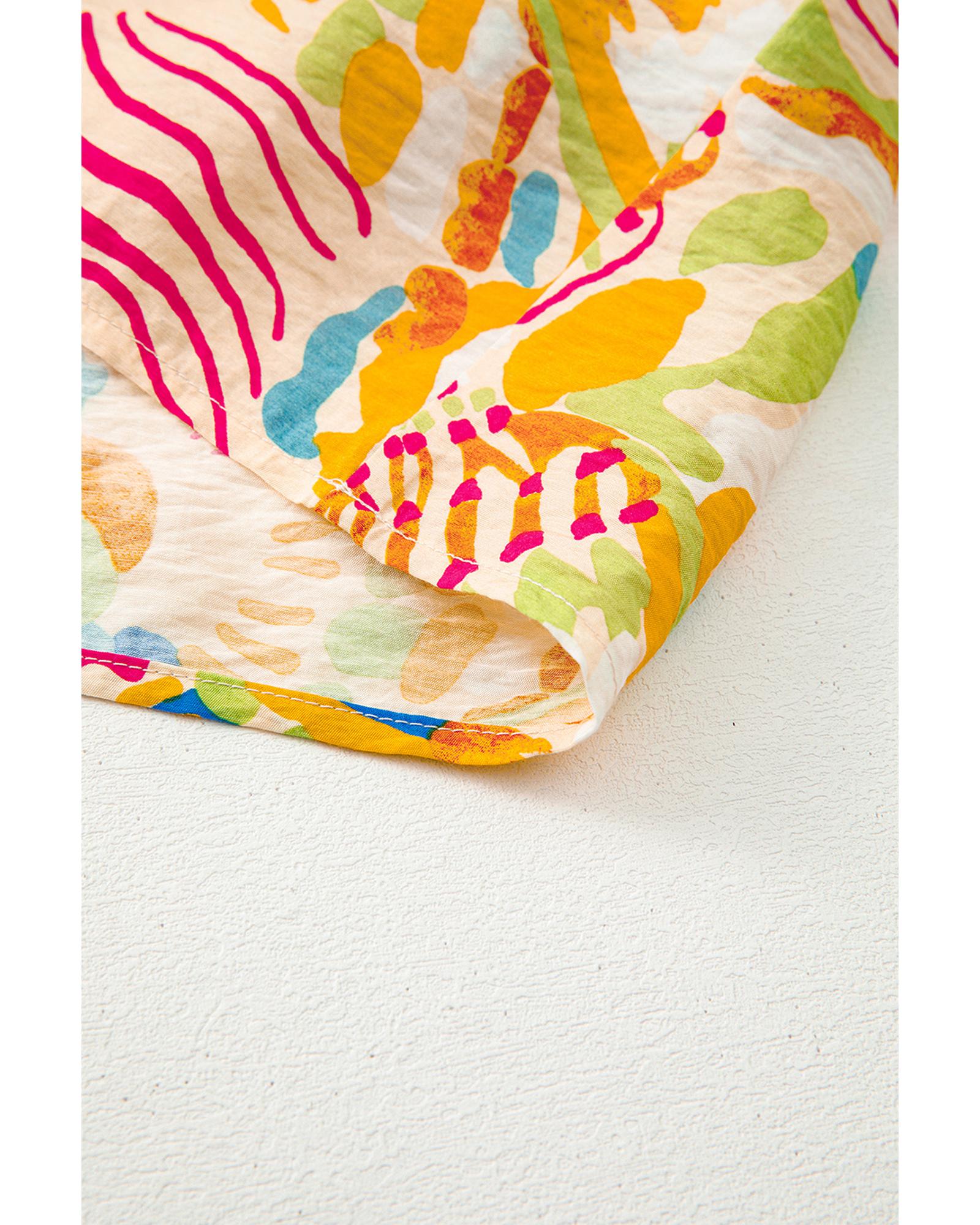Orange Floral Print Flounce Sleeve Buttoned Front Mini Dress - L