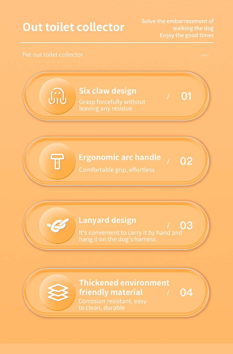 Keep your walks, backyard, and travel adventures clean with our innovative Pet Toilet Collector. This cleverly designed pooper scooper is an essential tool for responsible dog owners, offering a convenient, no-touch solution for pet waste pickup. Its lightweight and durable ABS construction makes it easy to carry and use wherever you and your furry friend roam.