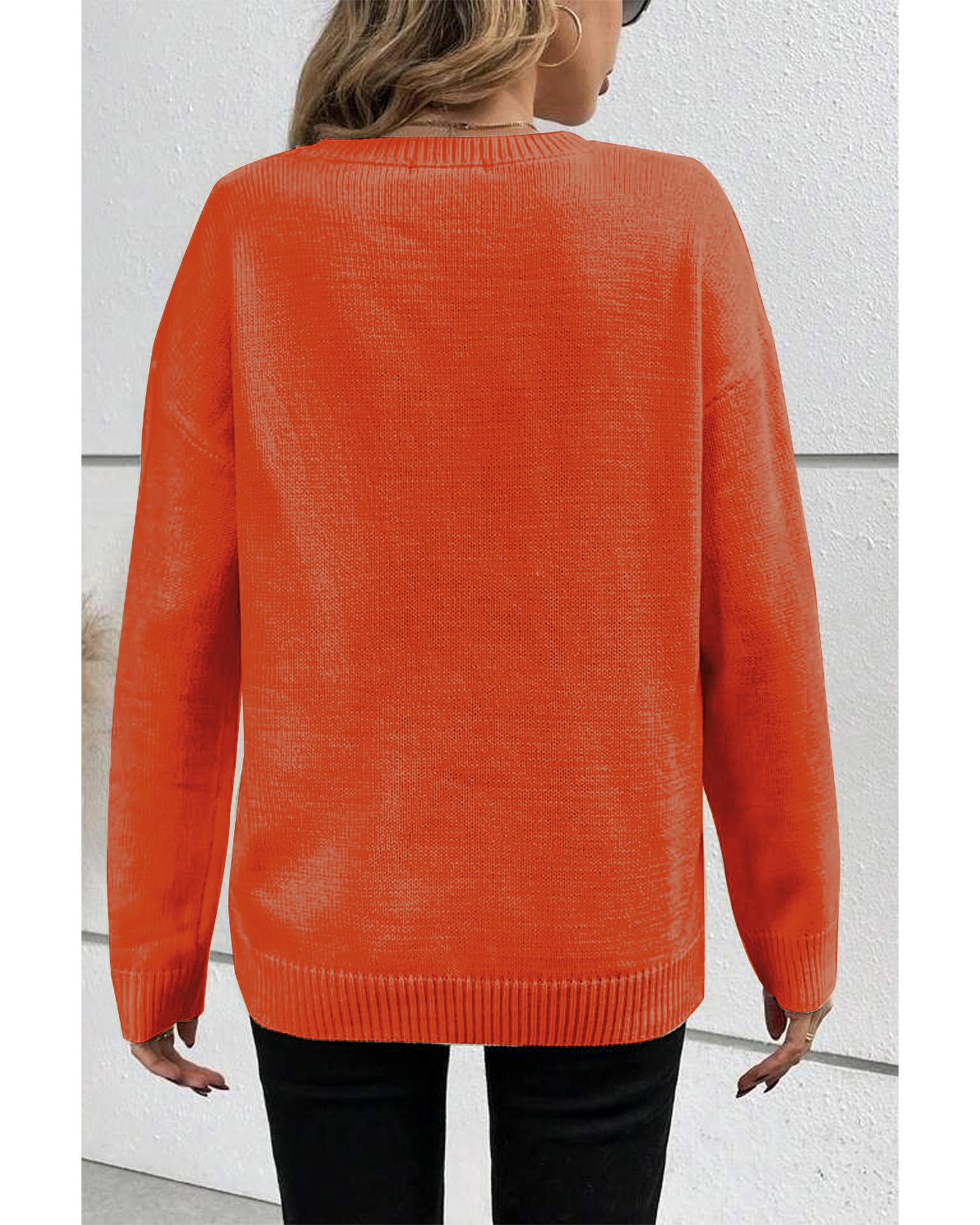 Orange Boo Knitted Pattern Ribbed Edge Drop Shoulder Sweater – XL