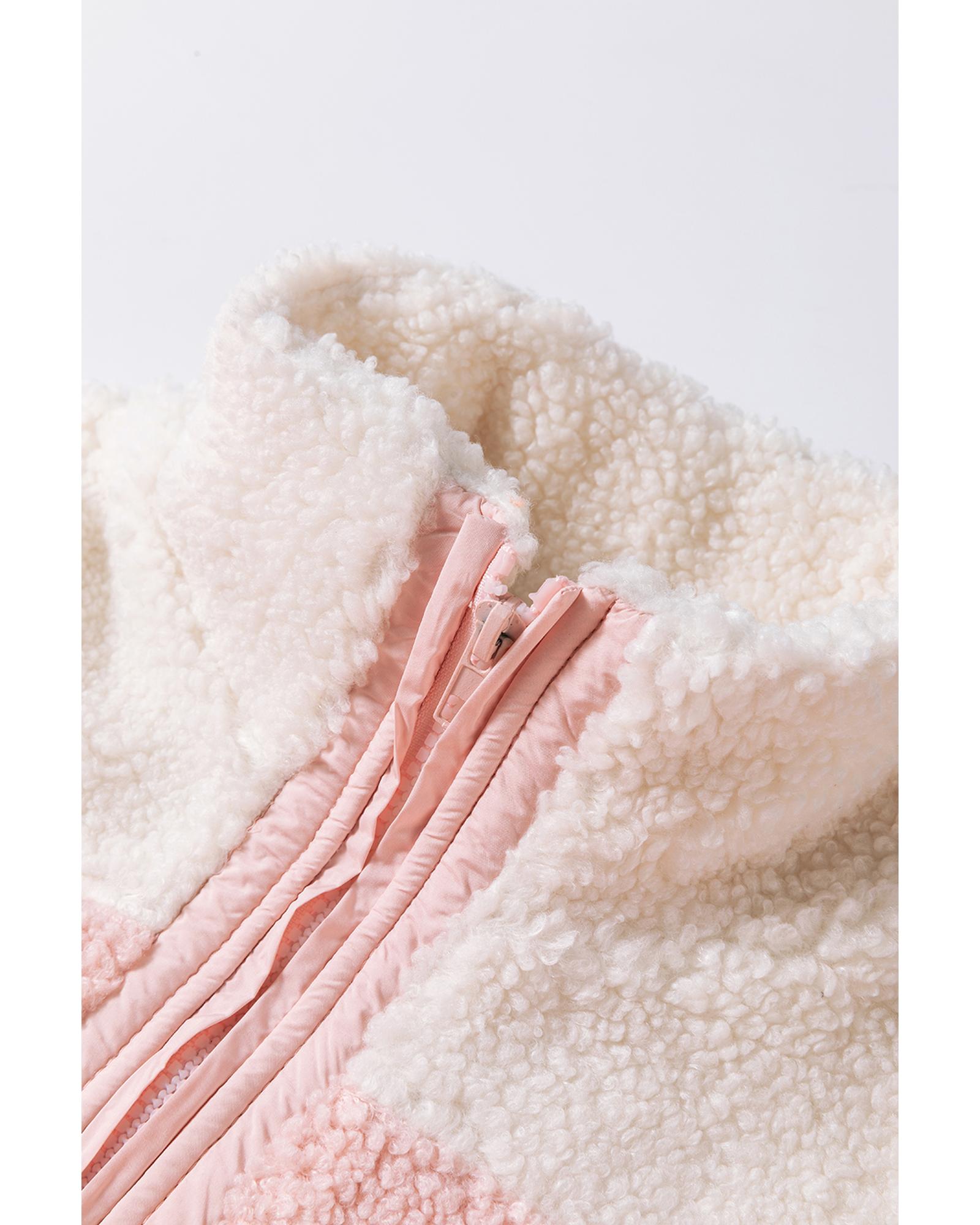 - Orange Colorblock Half Zipper Stand Neck Sherpa Sweatshirt