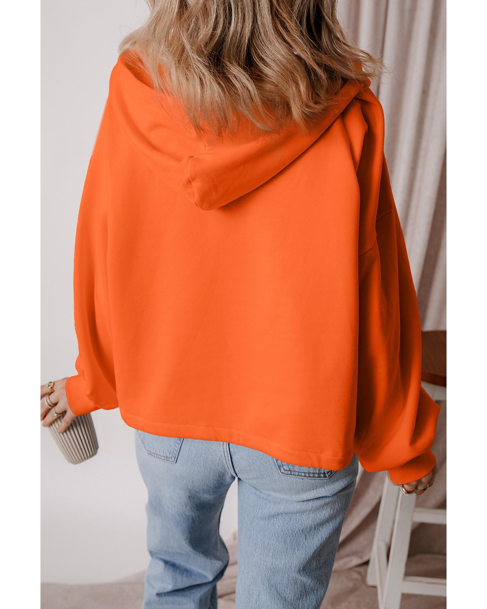 Orange Fleece Lined Half Zipper Kangaroo Pockets Loose Hoodie – 2XL