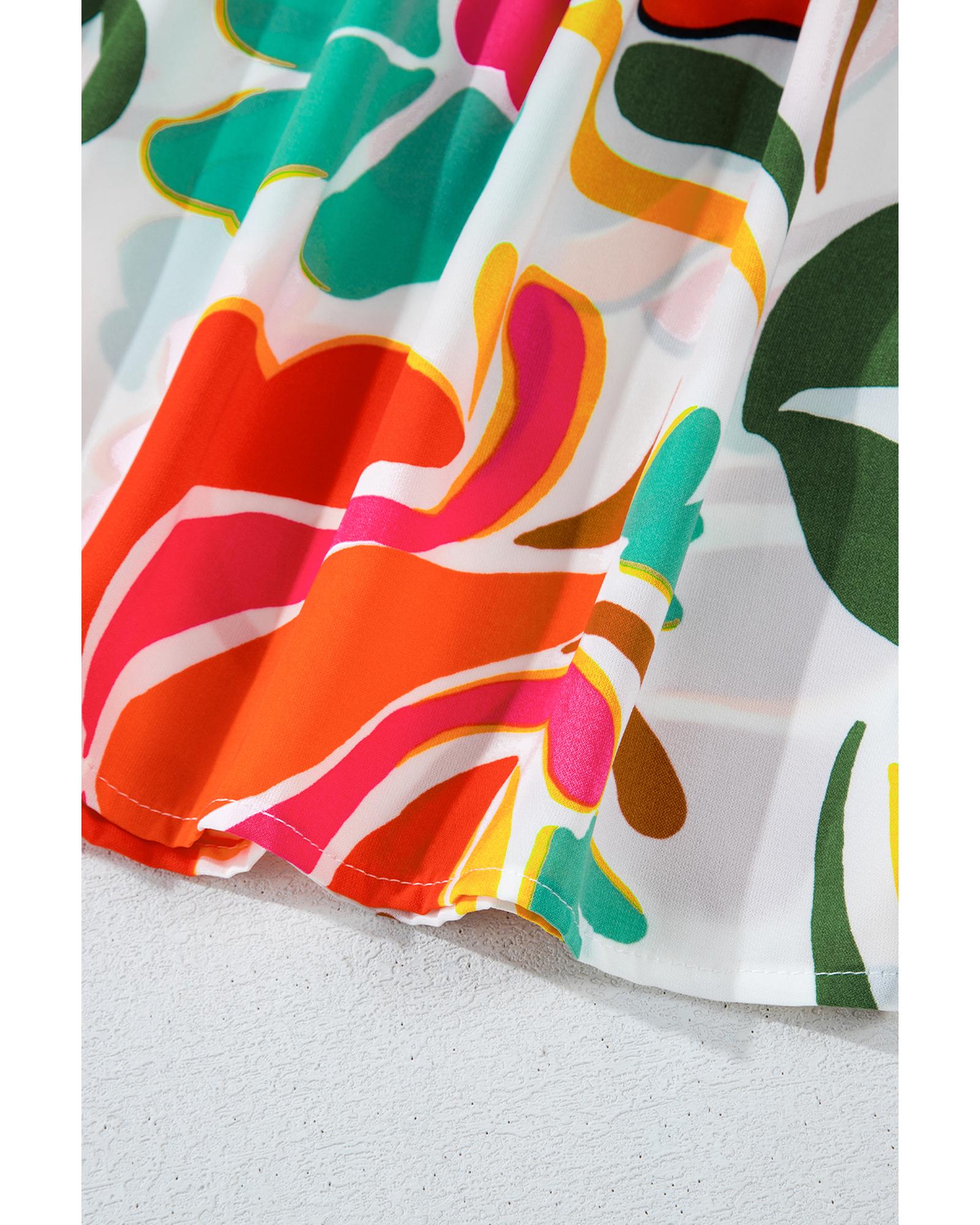 Orange Floral Print Drawstring V Neck Tiered Plus Size Dress – 2X