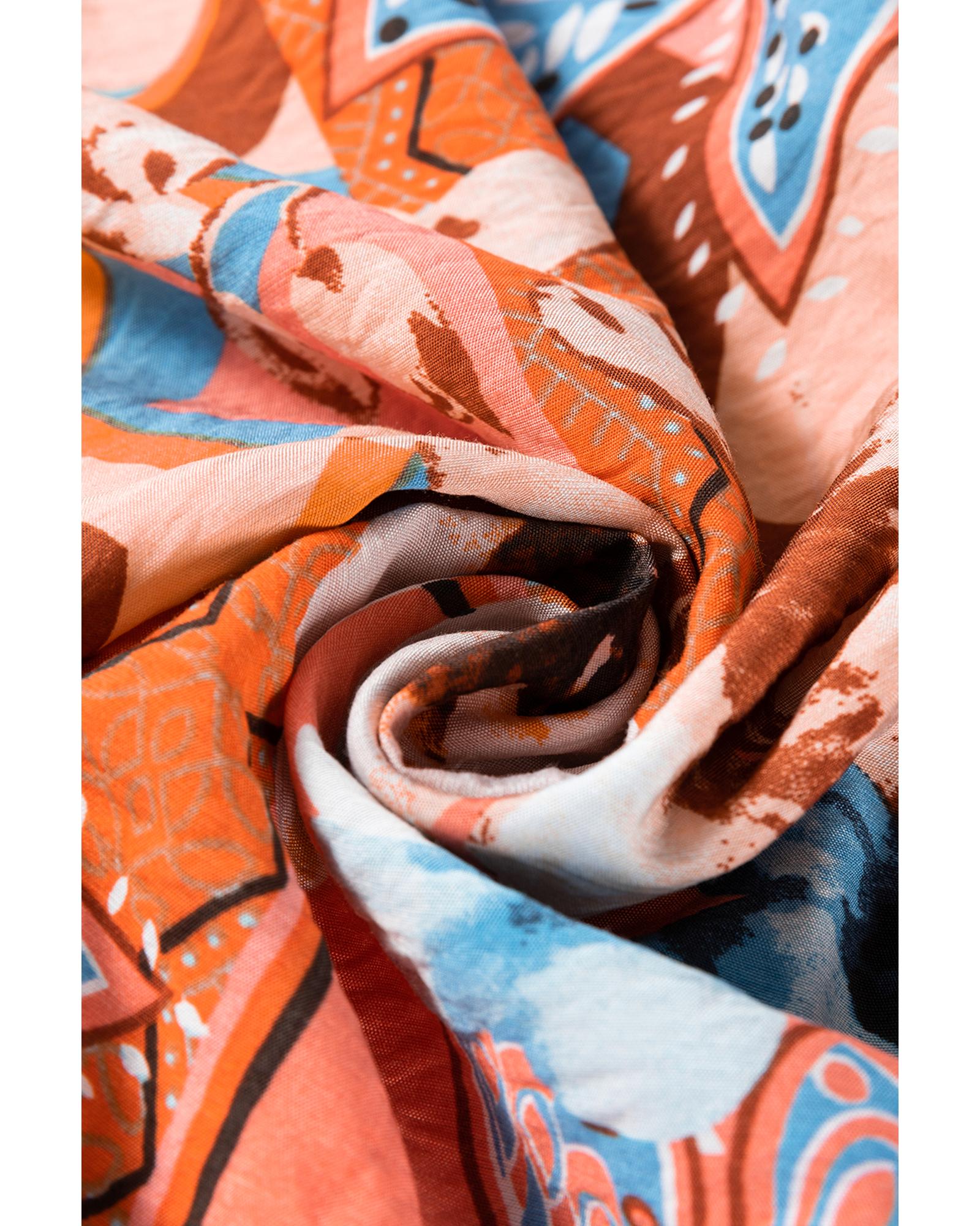 Orange Floral Print Shirred Cuff Buttoned Loose Shirt - L