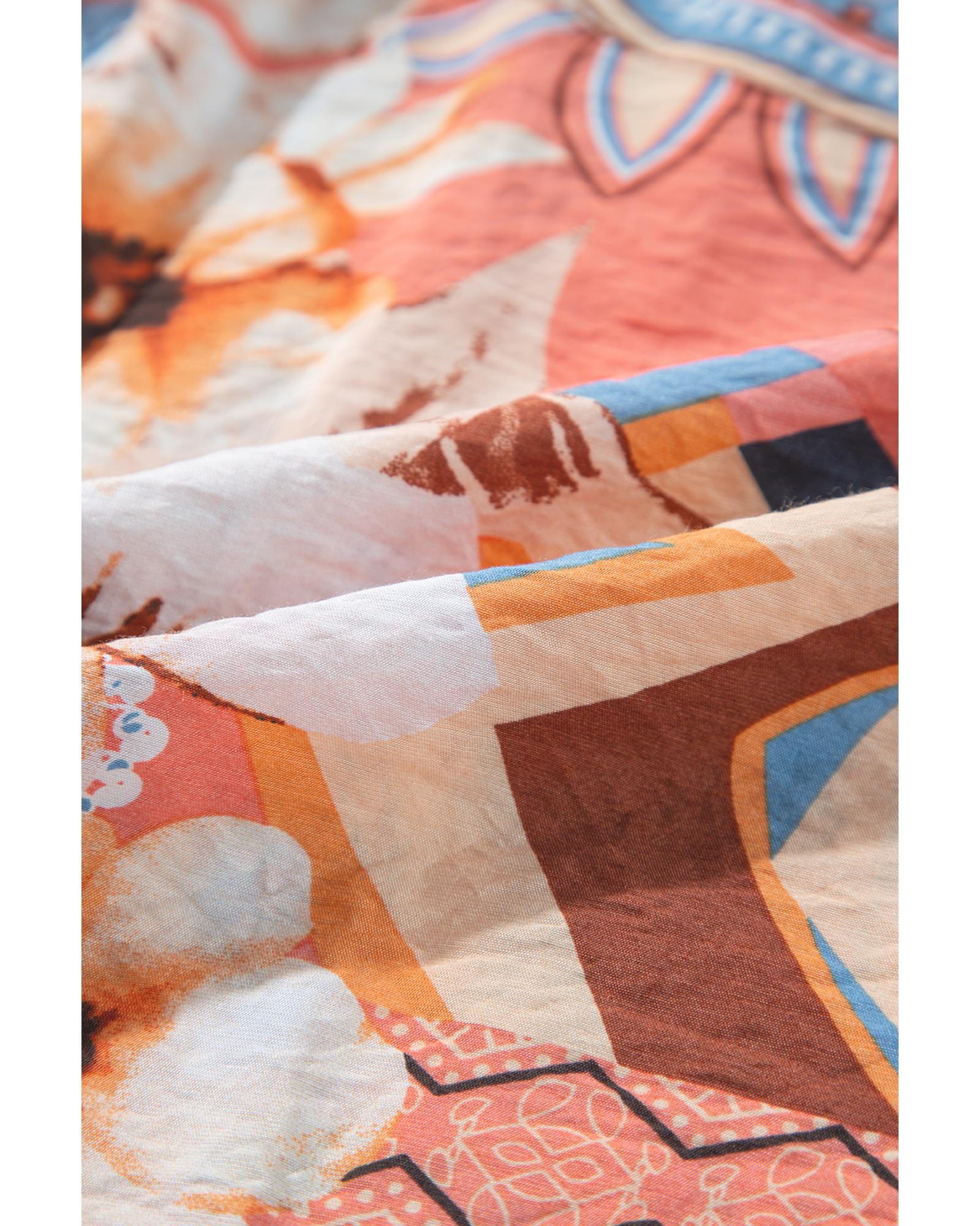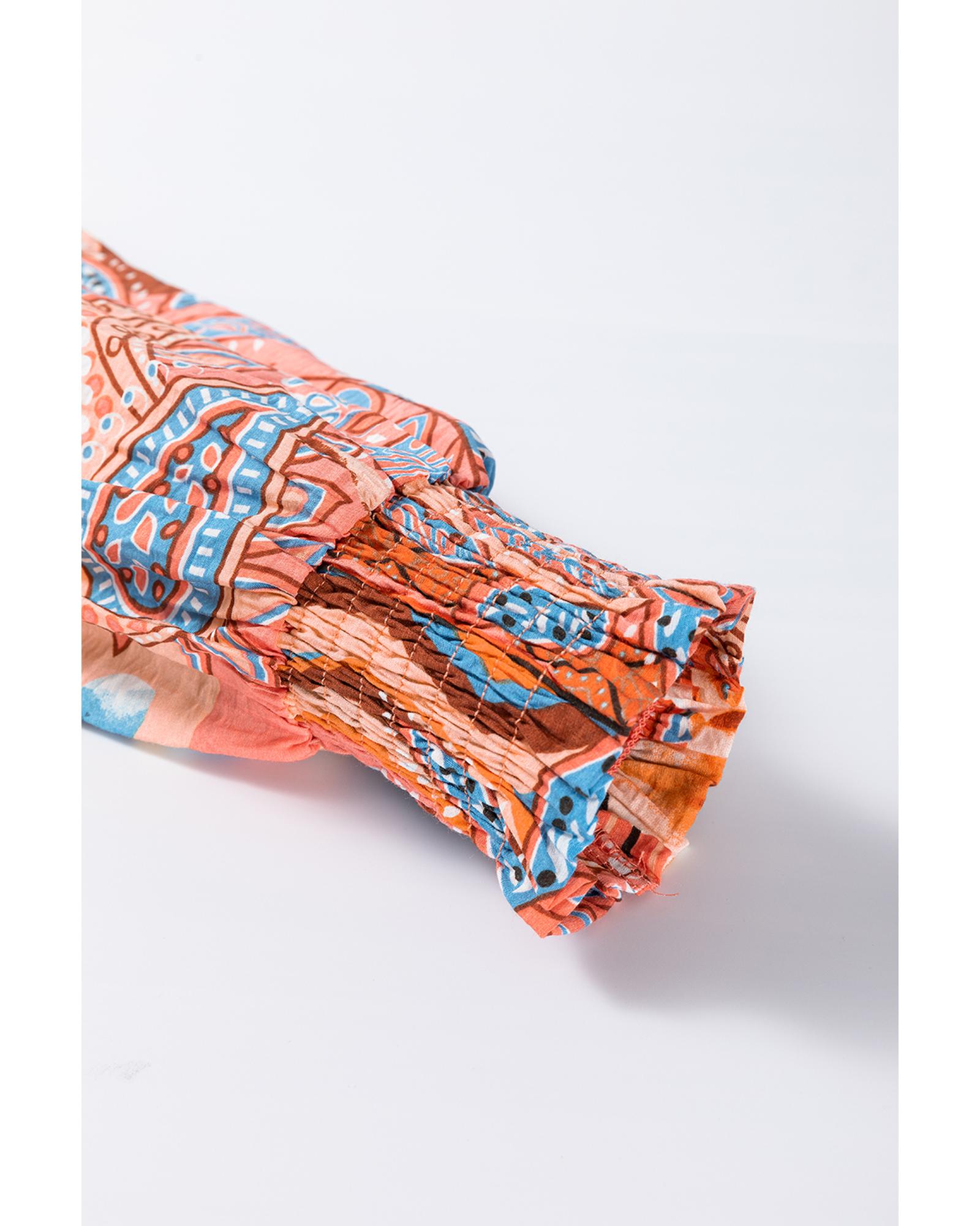 Orange Floral Print Shirred Cuff Buttoned Loose Shirt – XL