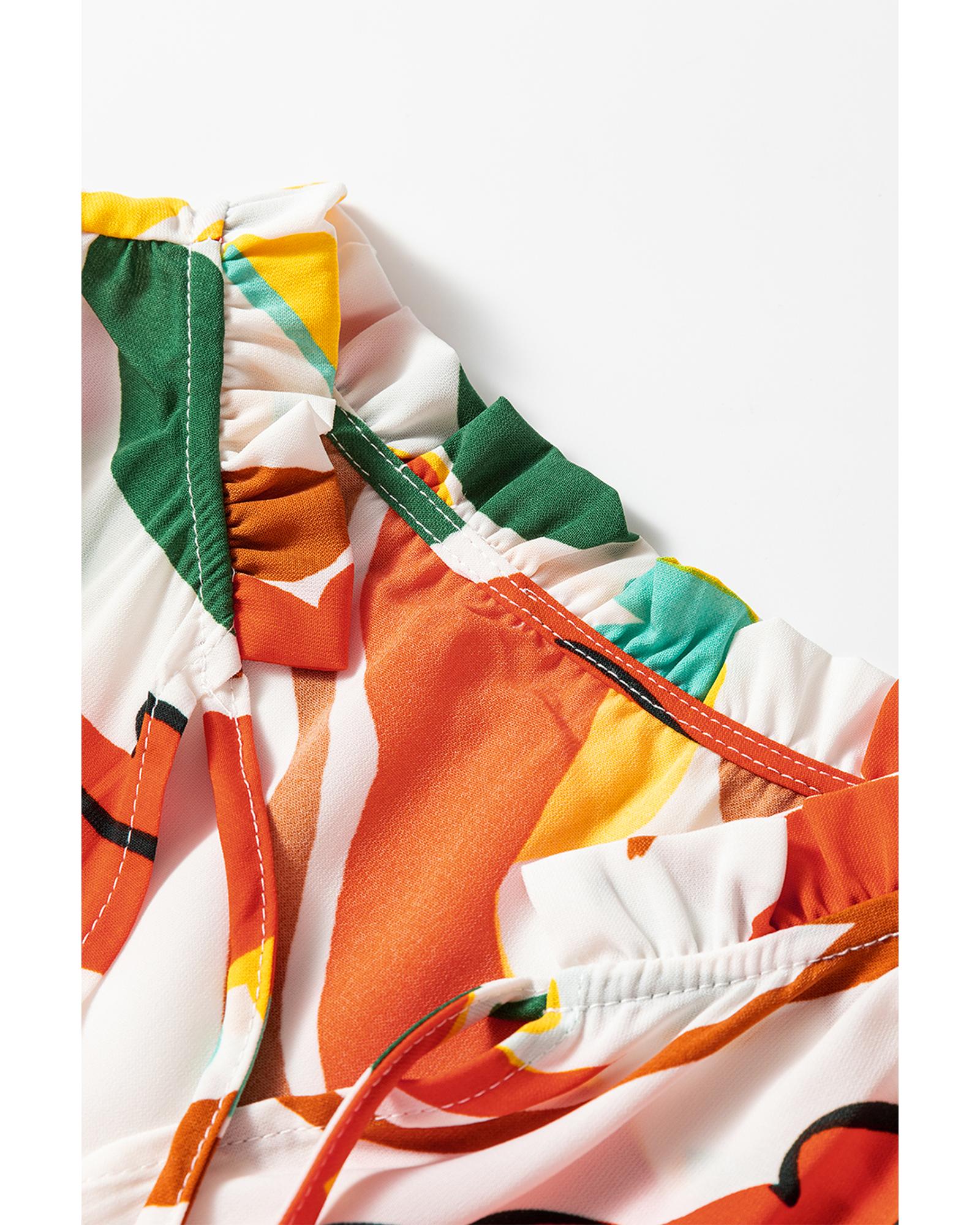 Orange Floral Print Split V Neck Tiered Maxi Dress – M