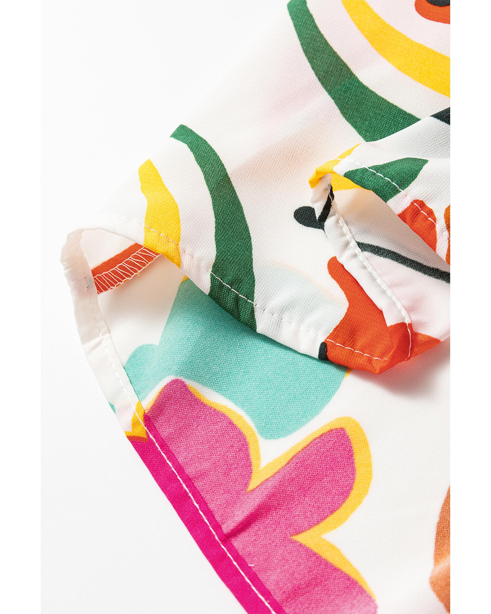 Pink Floral Shirred Puff Sleeve Buttoned Front Midi Dress with Sash - M Original price was: $76.99.Current price is: $41.99.