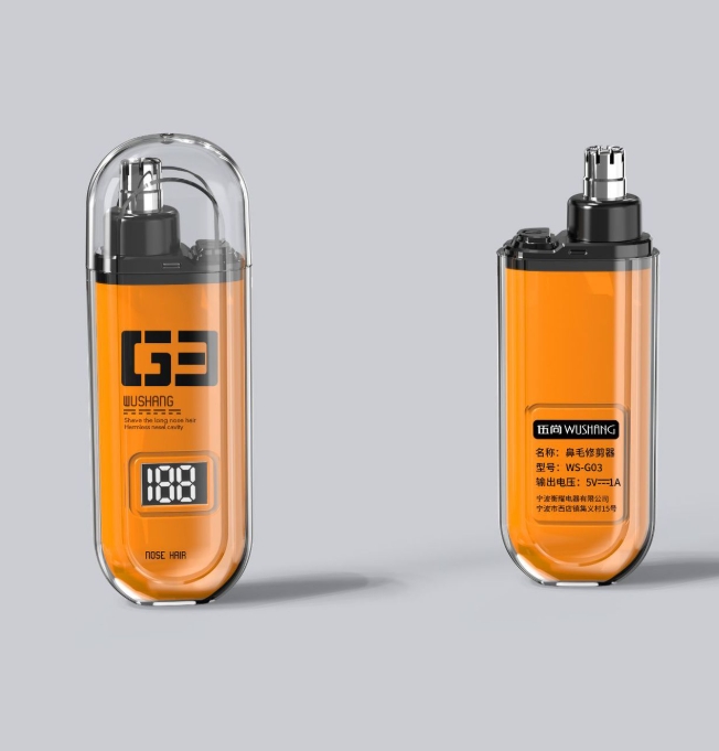 Orange Painless Electric Nose & Ear Hair Trimmer – USB-C Rechargeable Grooming Tool with LED Battery Display for Men and Women