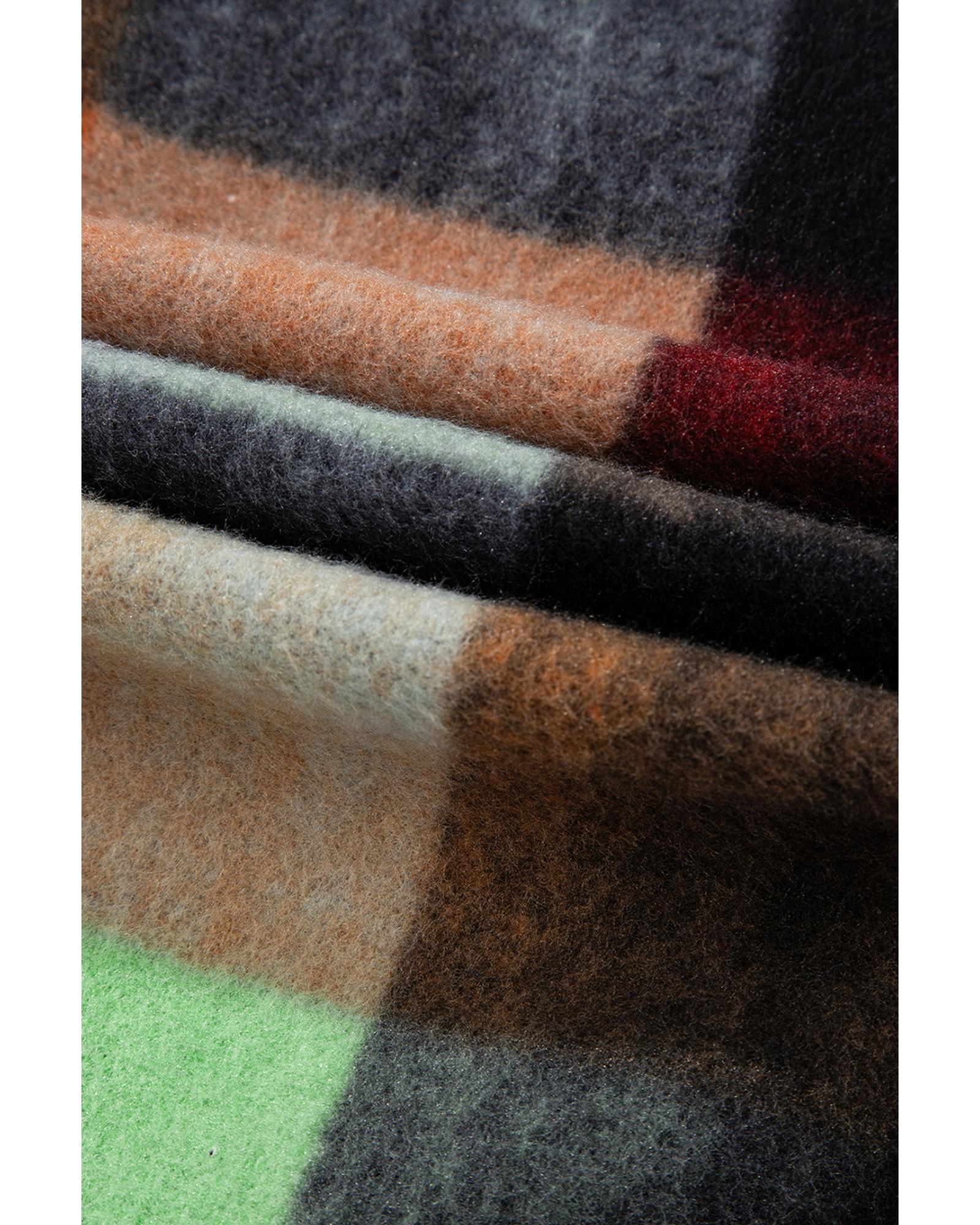 Orange Plaid Print Flap Pocket Long Jacket – S