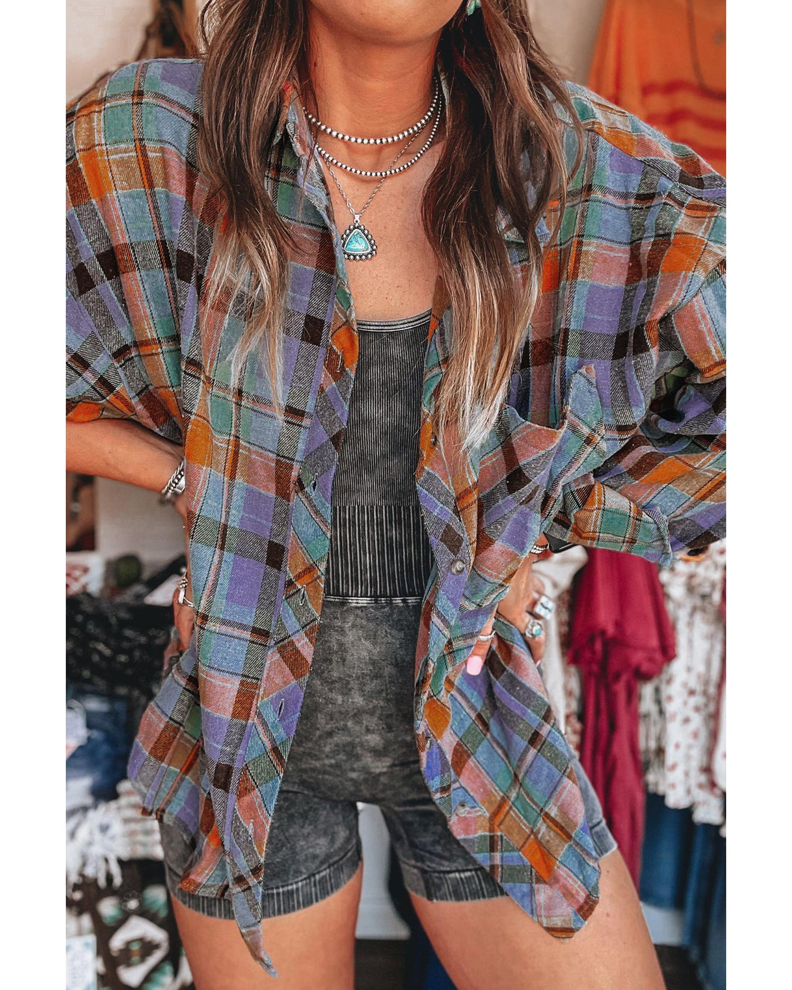 Orange Plaid Print Loose Vintage Shirt – 2XL