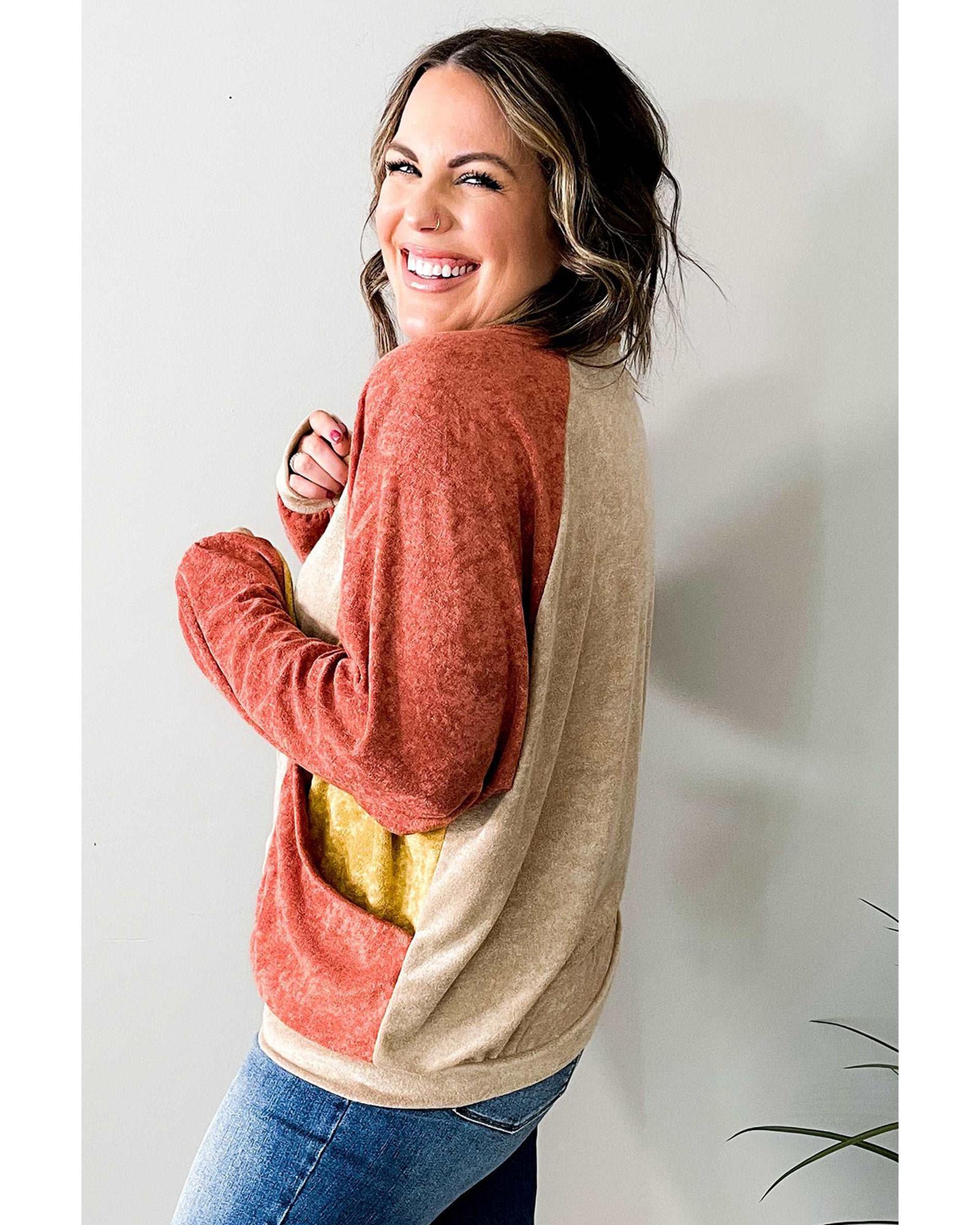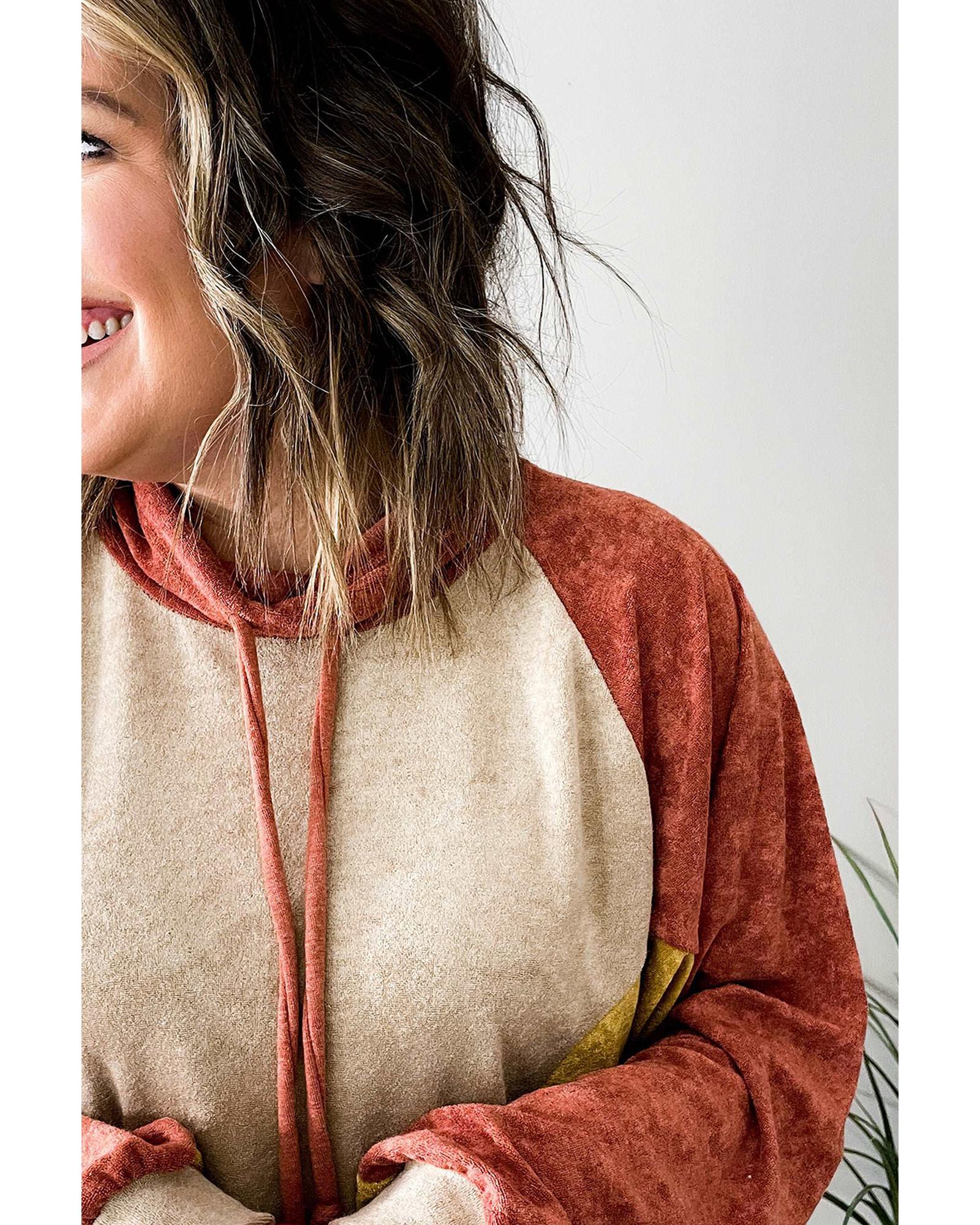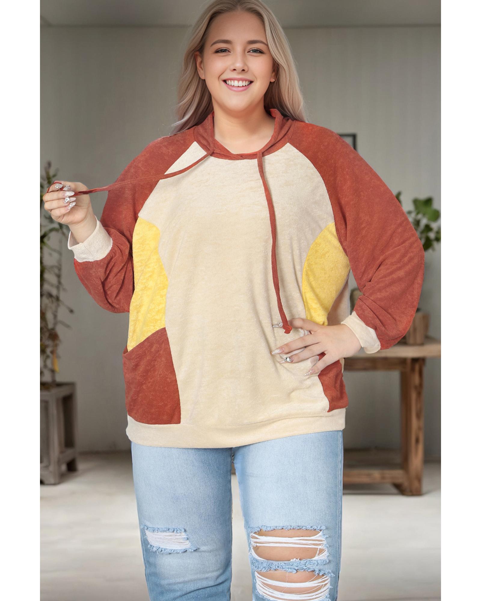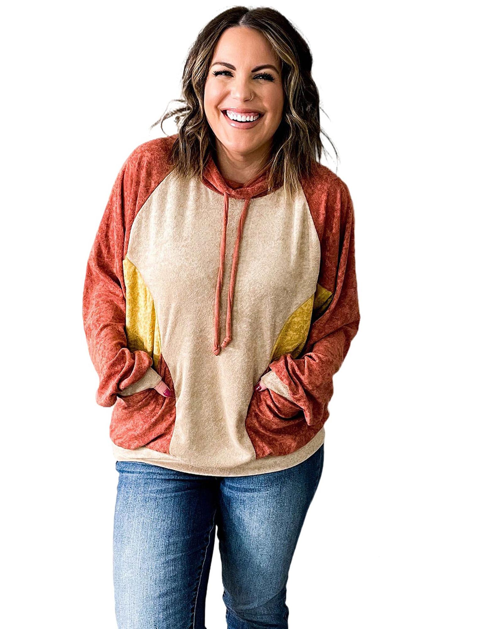 Orange Plus Size Colorblock Raglan Hoodie with Pockets – 3X