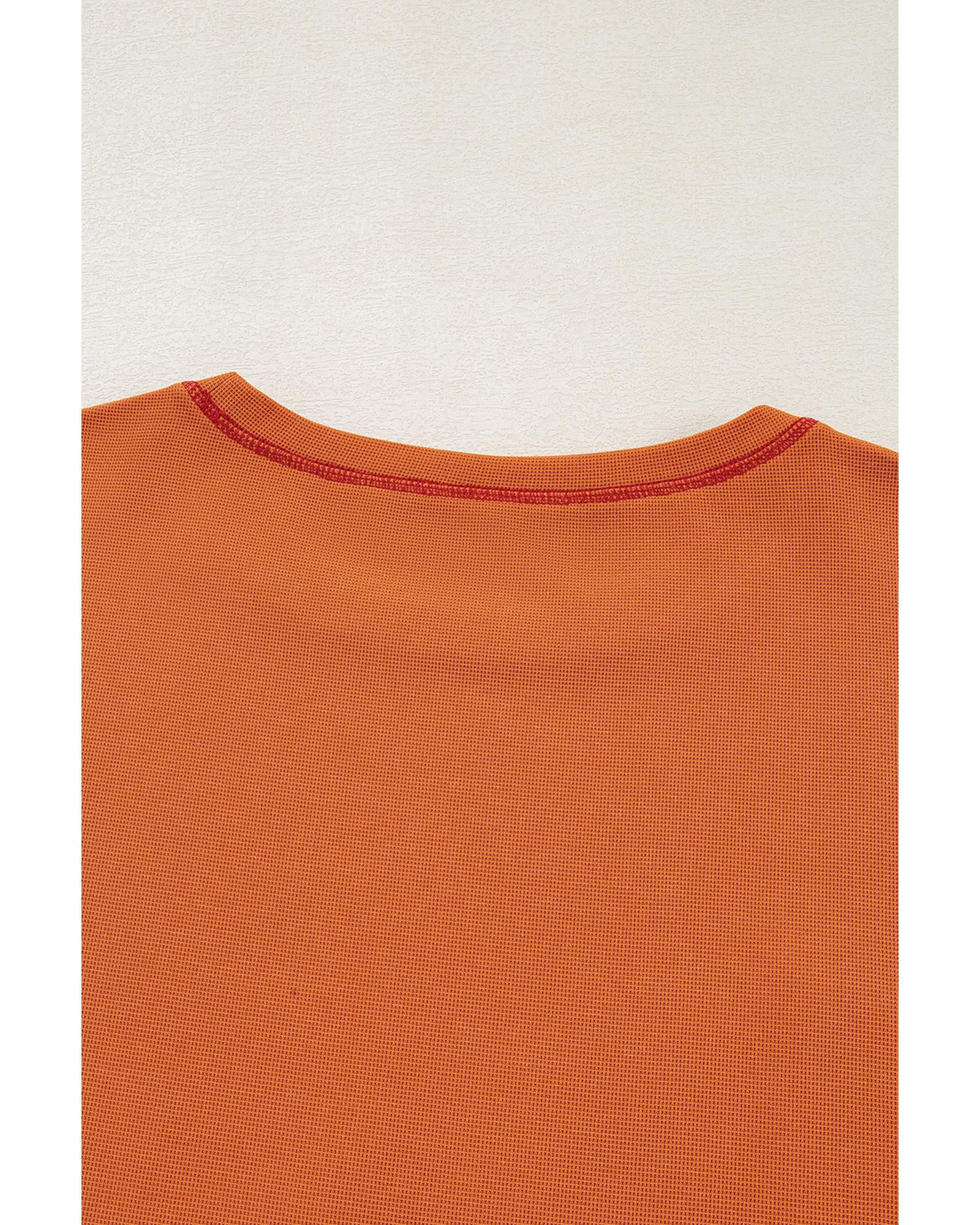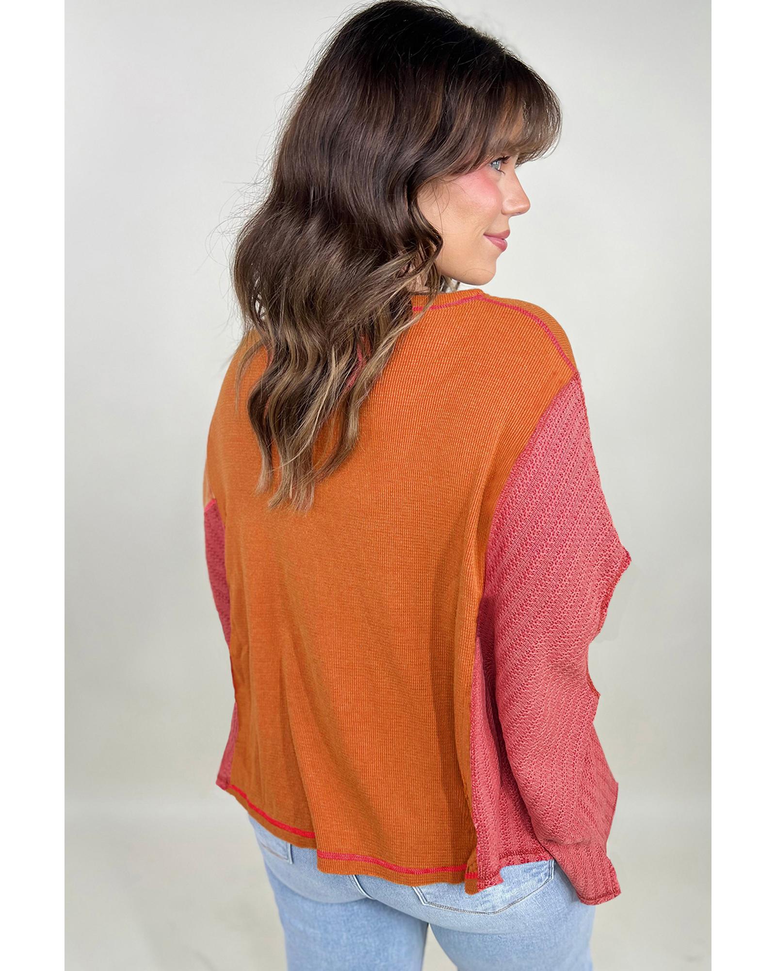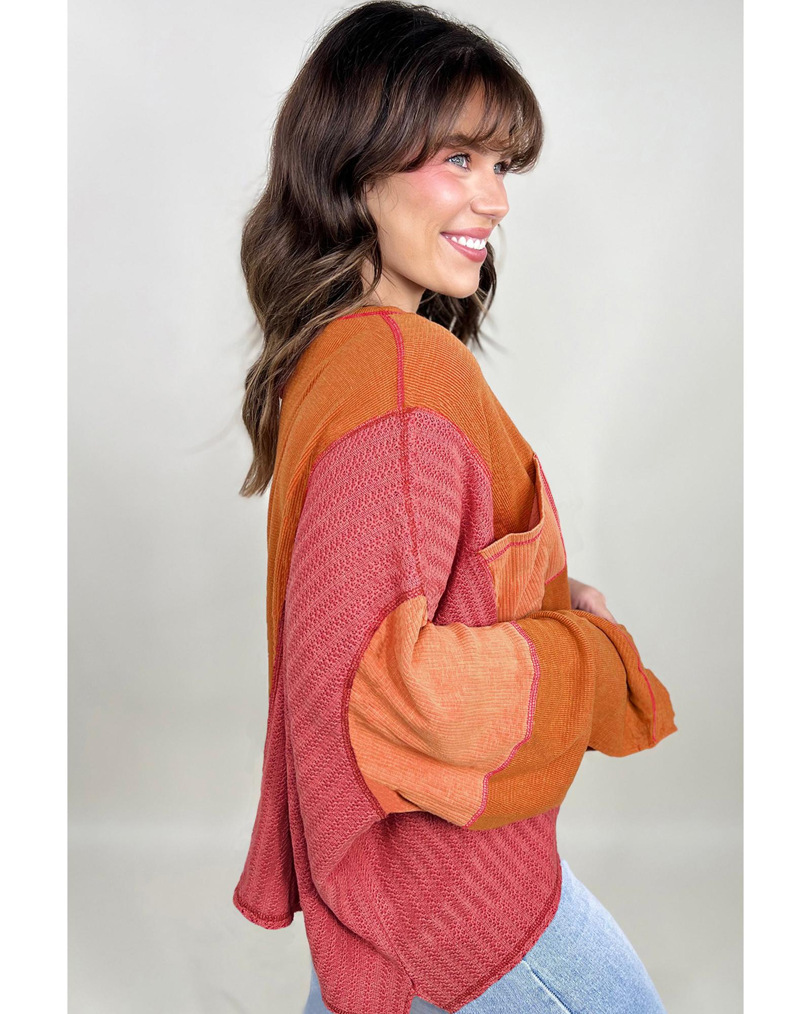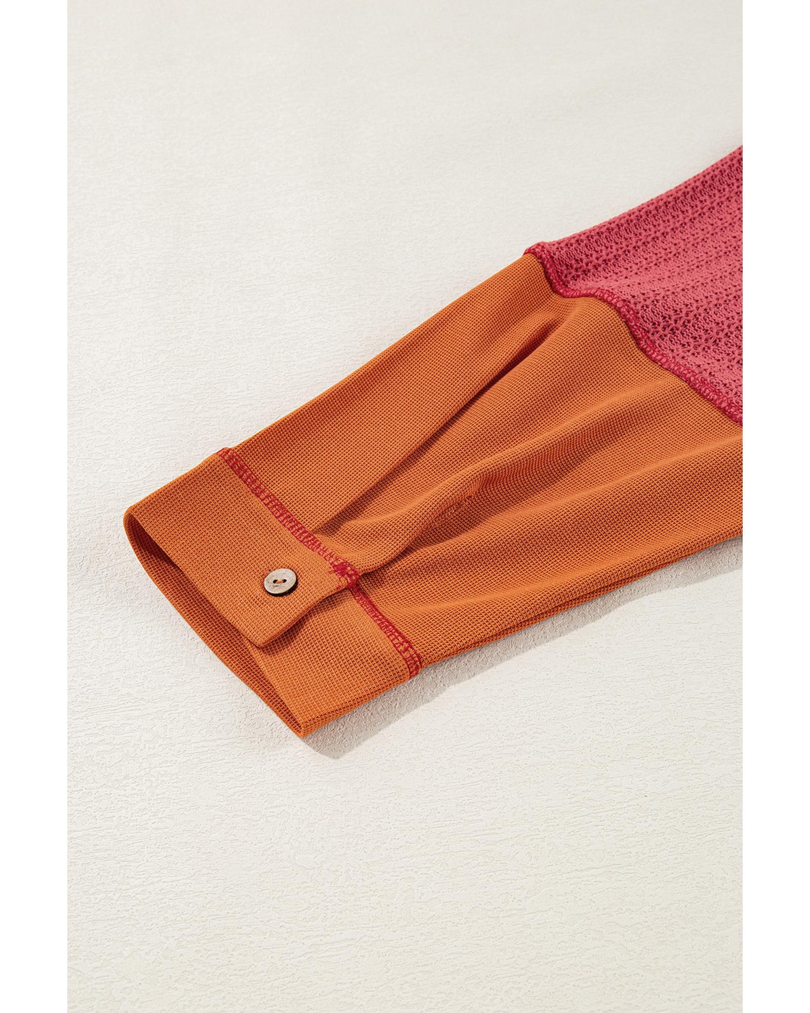 Orange Textured Knit Color Block Patchwork Chest Pocket Plus Size Top – 2X