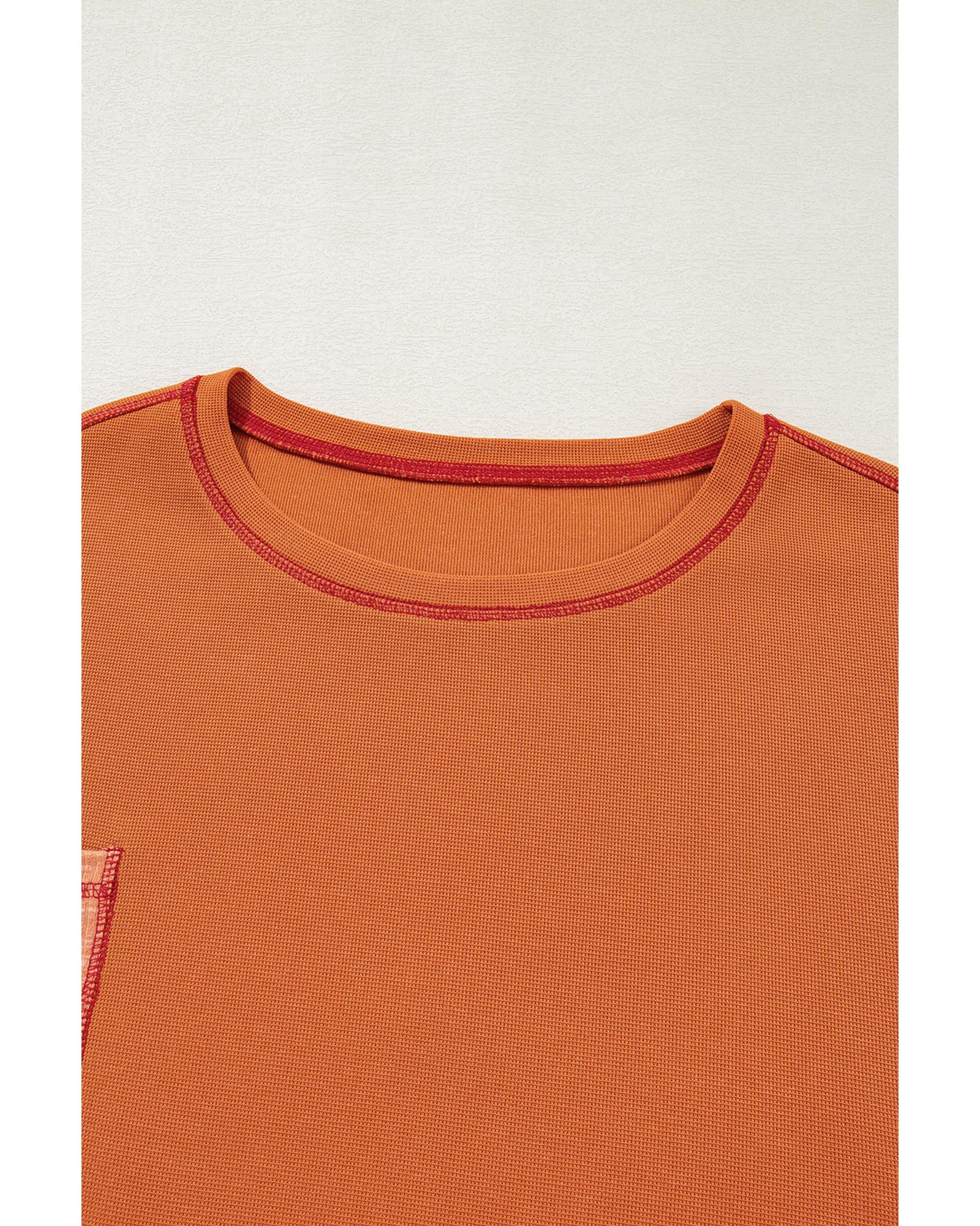 - Orange Textured Knit Color Block Patchwork Chest Pocket Plus Size Top