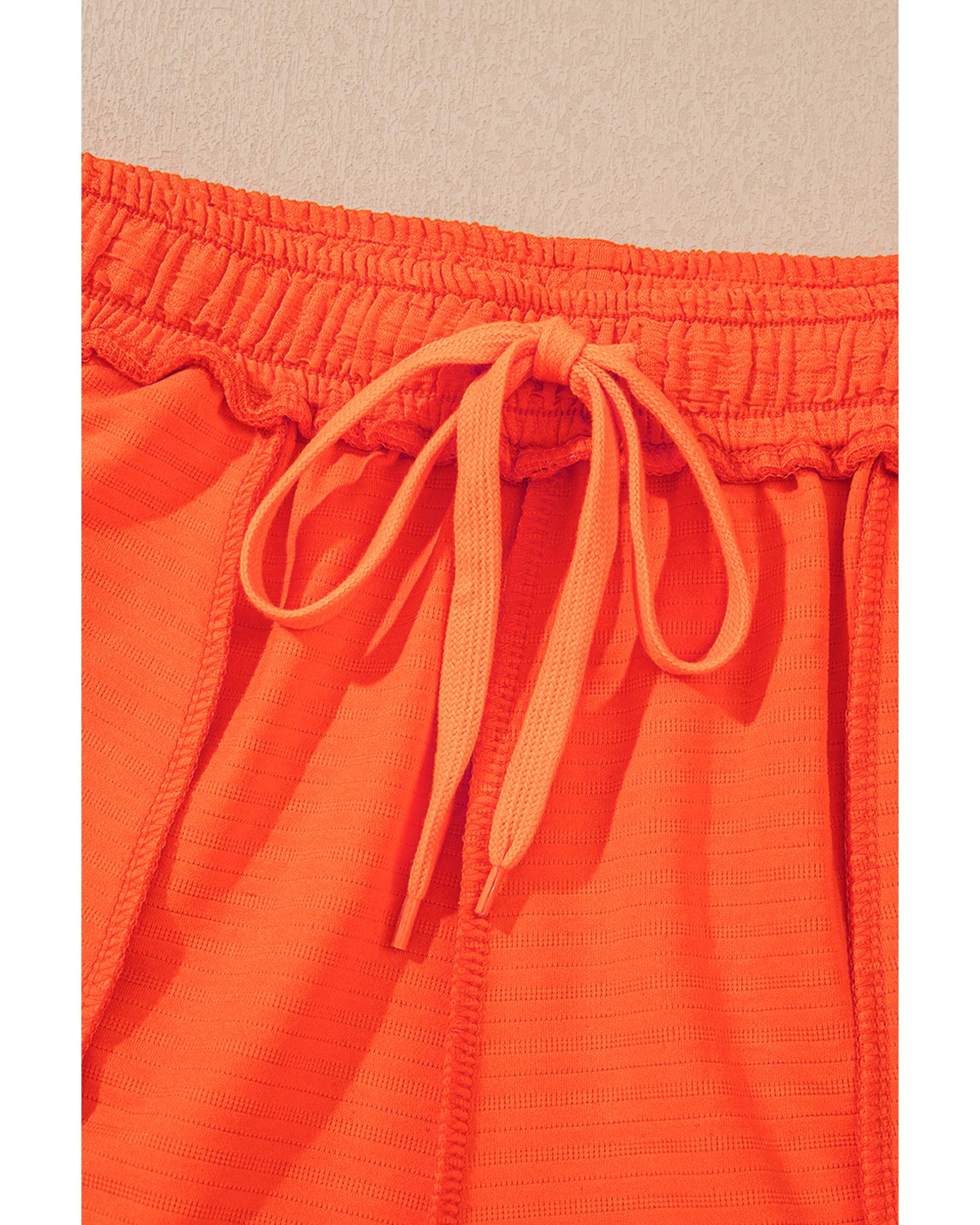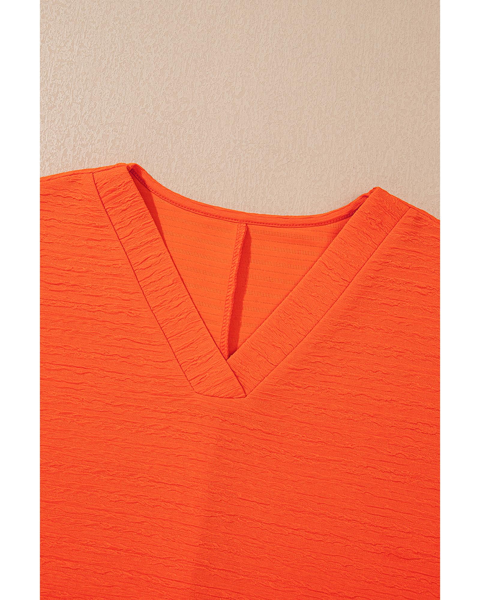 Orange Textured V Neck T Shirt and Shorts Set – XL