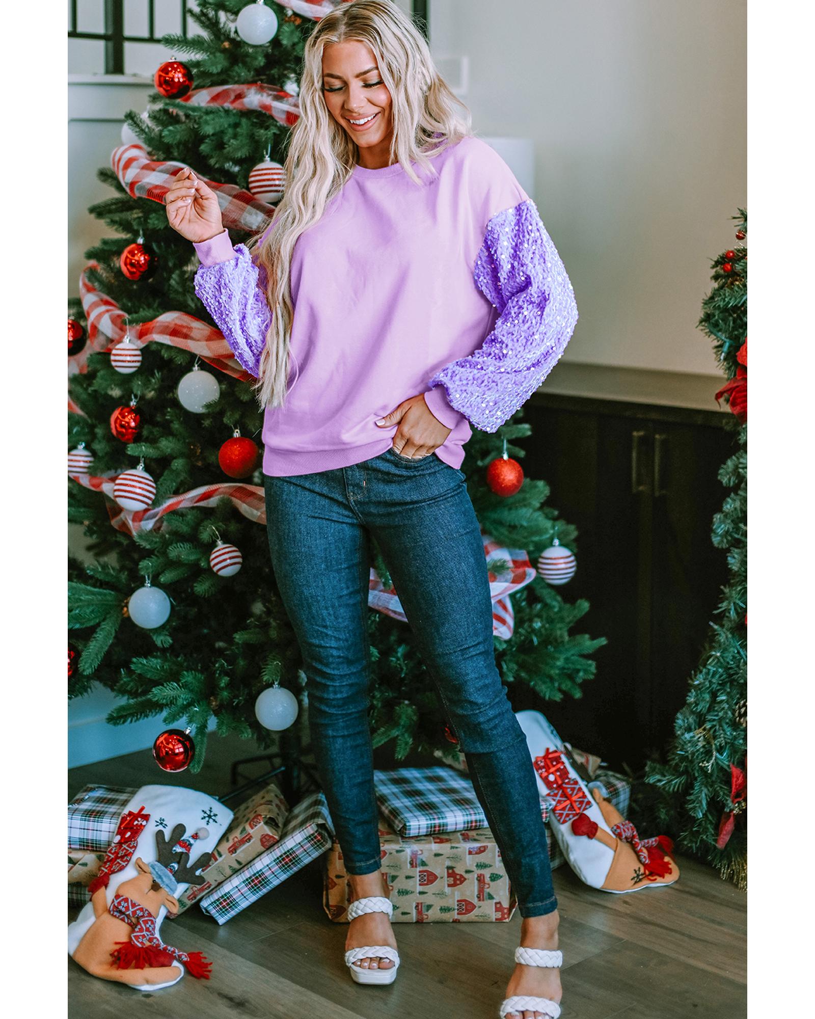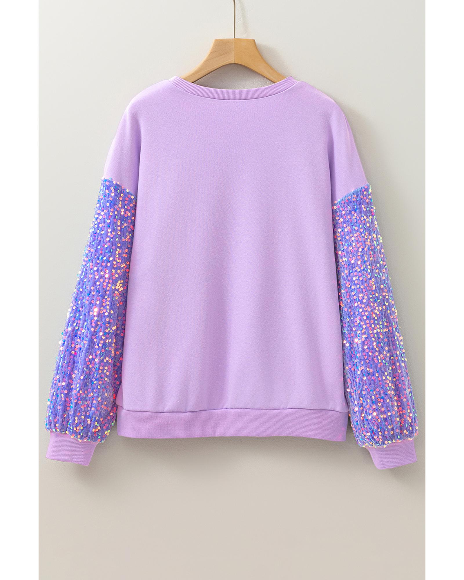 Orchid Petal Sequin Patchwork Long Sleeve Pullover Top – S