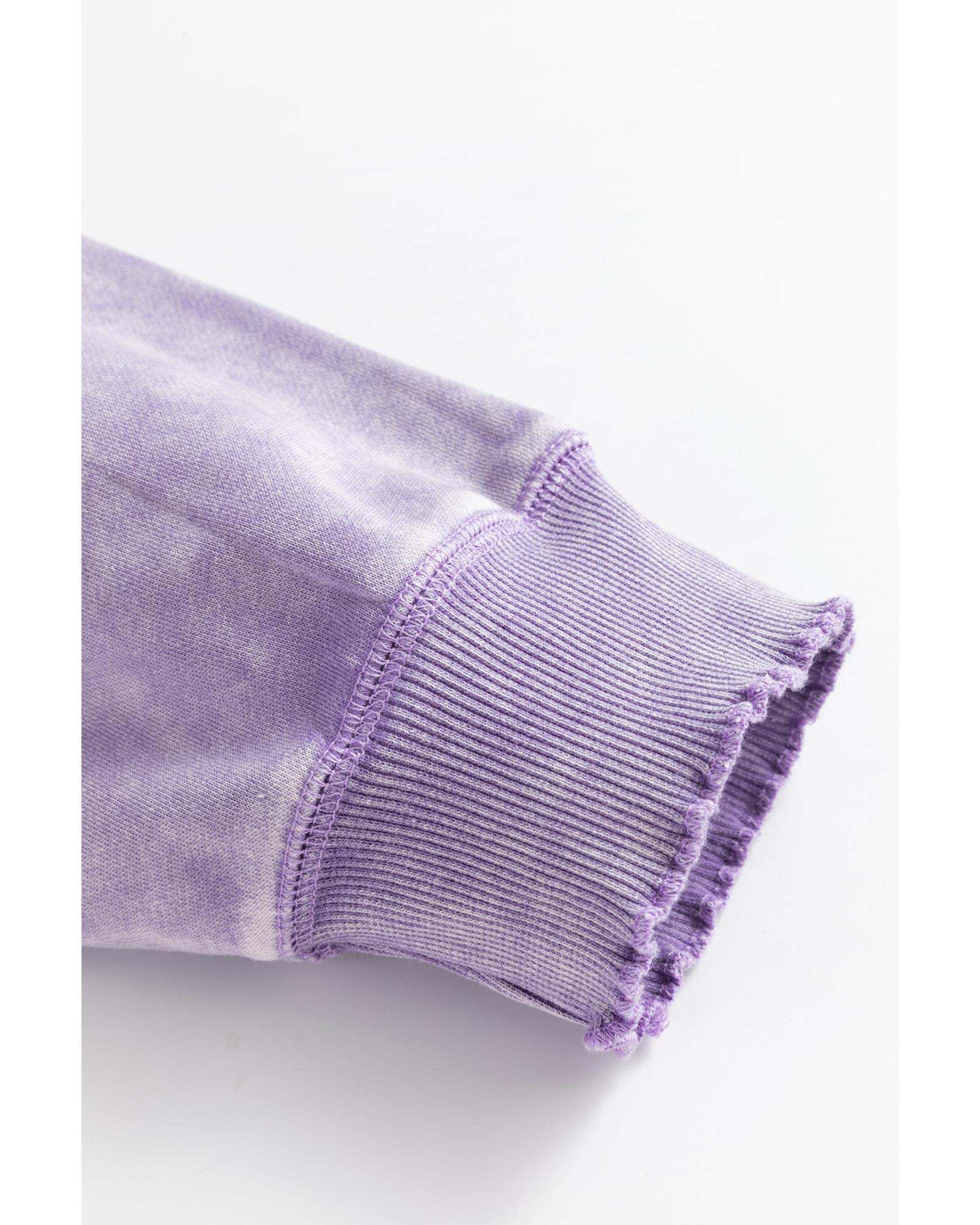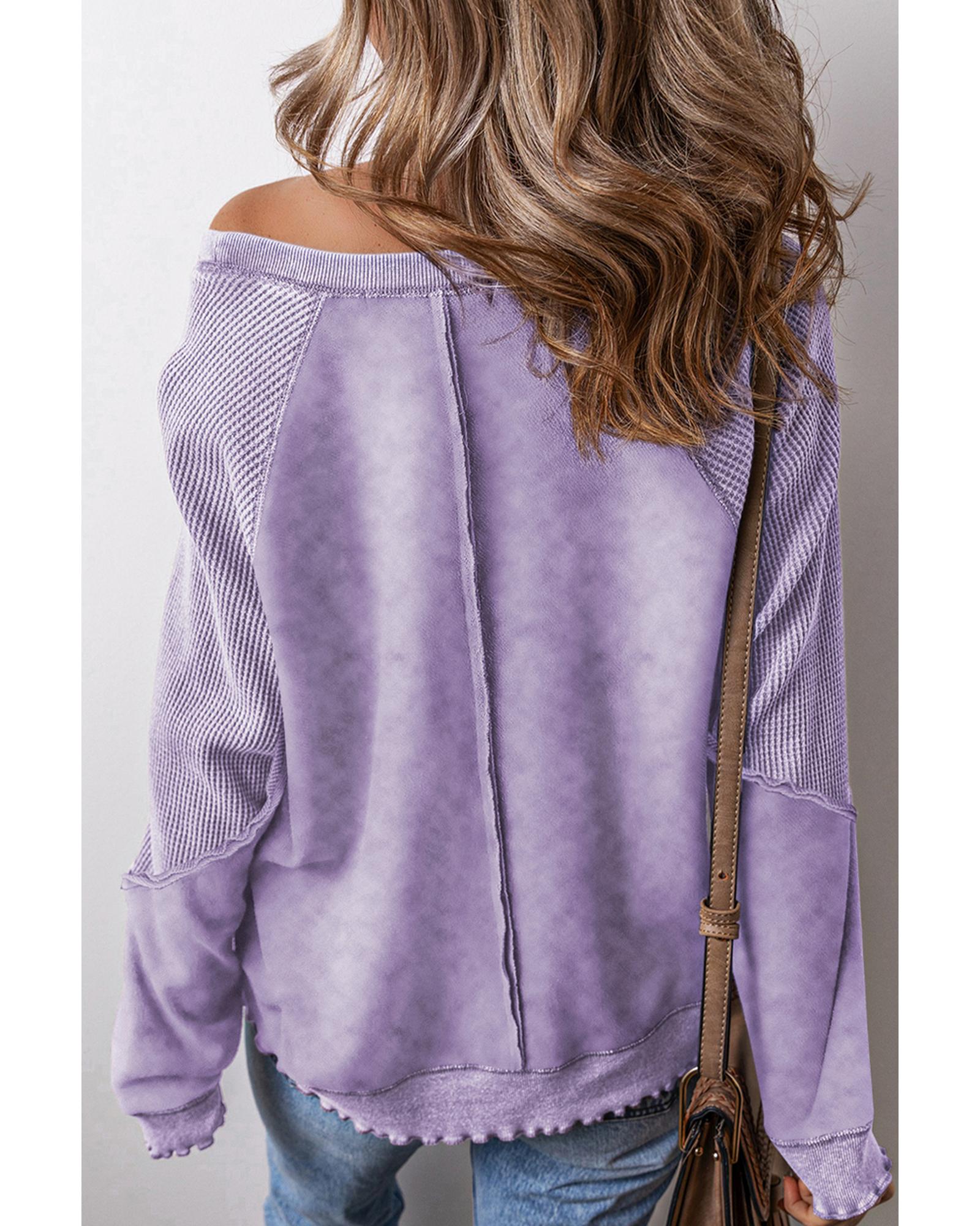 Orchid Petal Textured Patchwork Frilled Trim Plus Size Pullover Sweatshirt – 1X