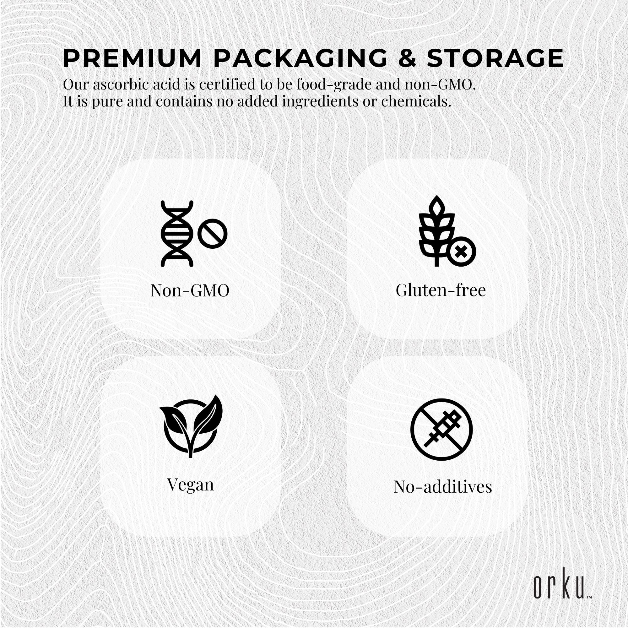 Orku 1.3Kg Vitamin C Powder in Tub Pure L-Ascorbic Acid – USP Grade Non-GMO
