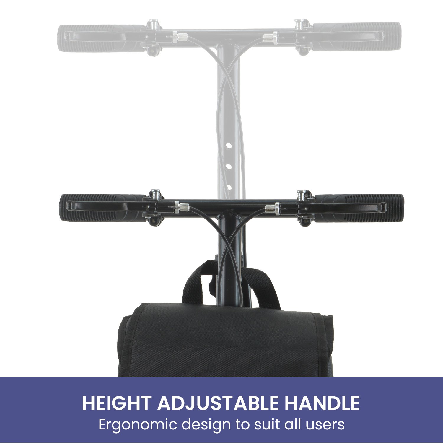 This knee walker features a height-adjustable knee pad and handles for your comfort. Supporting up to 136kg, the Orthonica knee scooter provides reliable performance even on rough surfaces. It also includes a handy cloth bag for keeping essentials within reach, making it perfect for both indoor and outdoor use, giving you a hassle-free experience.