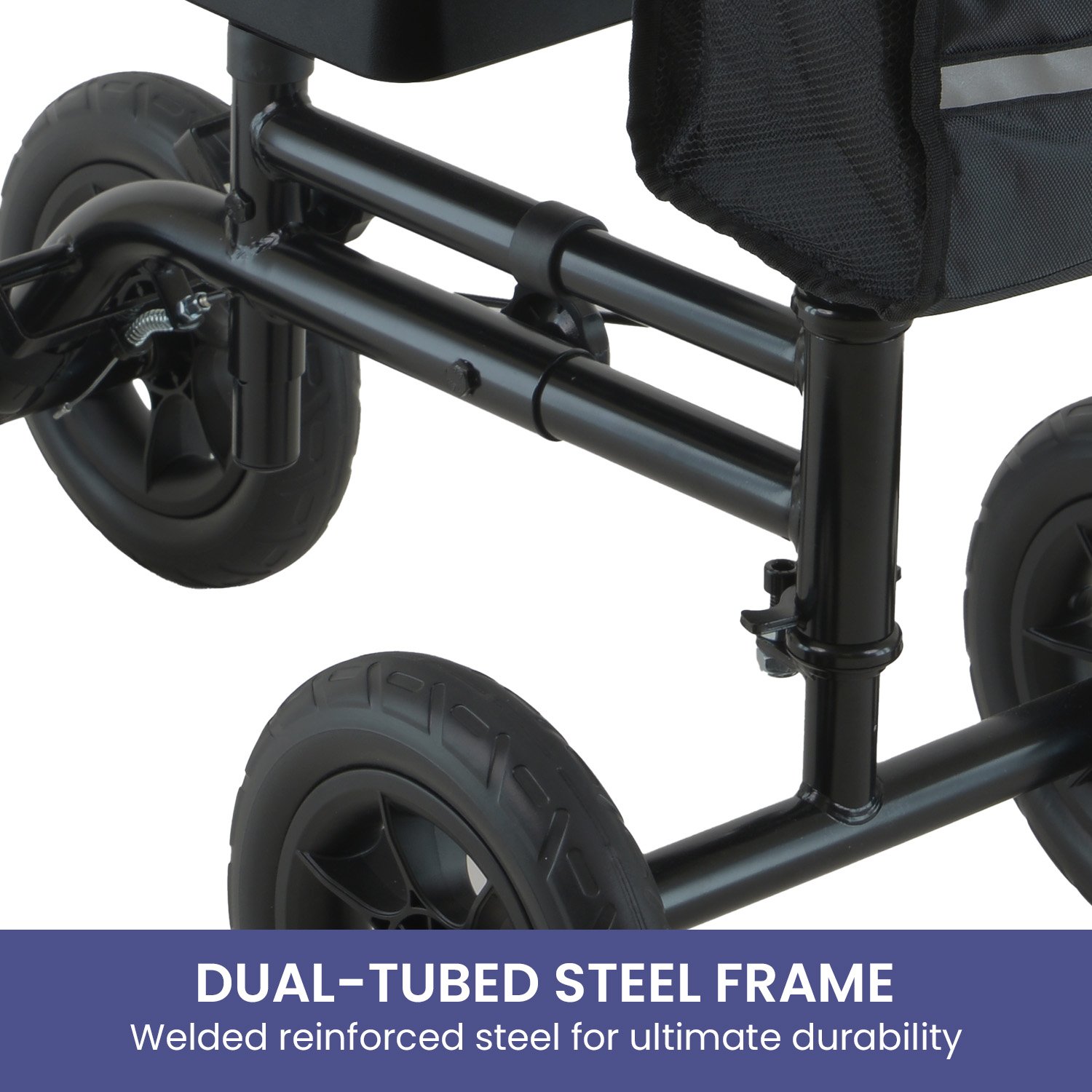Make your recovery easier and much more comfortable using this ergonomic knee scooter by Orthonica. Unlike models that use less sturdy plastic connectors, this mobility scooter features a dual-tube and welded steel frame for added strength and stability. Glide smoothly and effortlessly with its 10-inch black wheels while enjoying the comfort of a PVC foam knee pad. The handle can also be folded down for easy transport and storage.