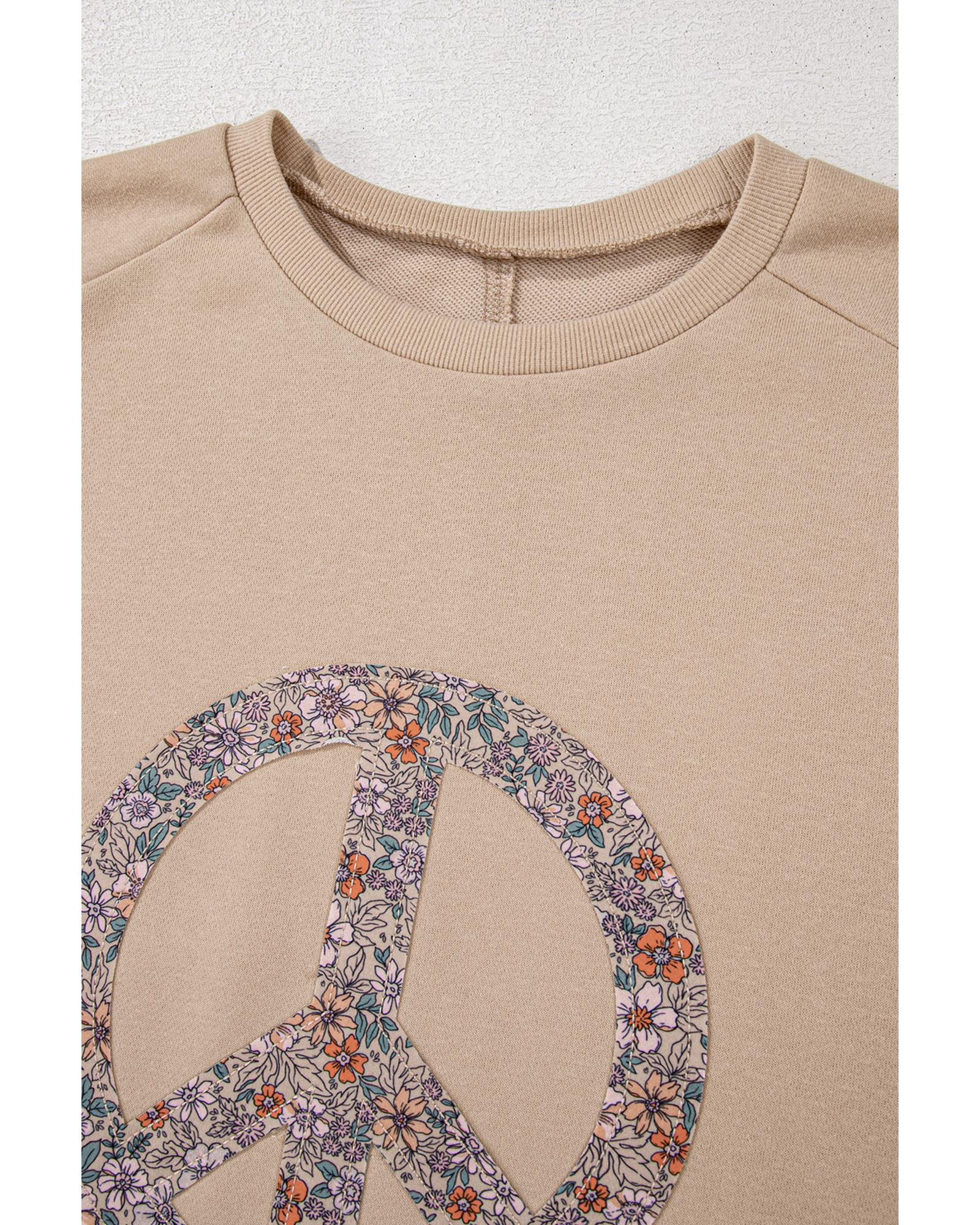 Pale Khaki Floral Peace Sign Graphic Washed Terry Plus Size Sweatshirt – 3X