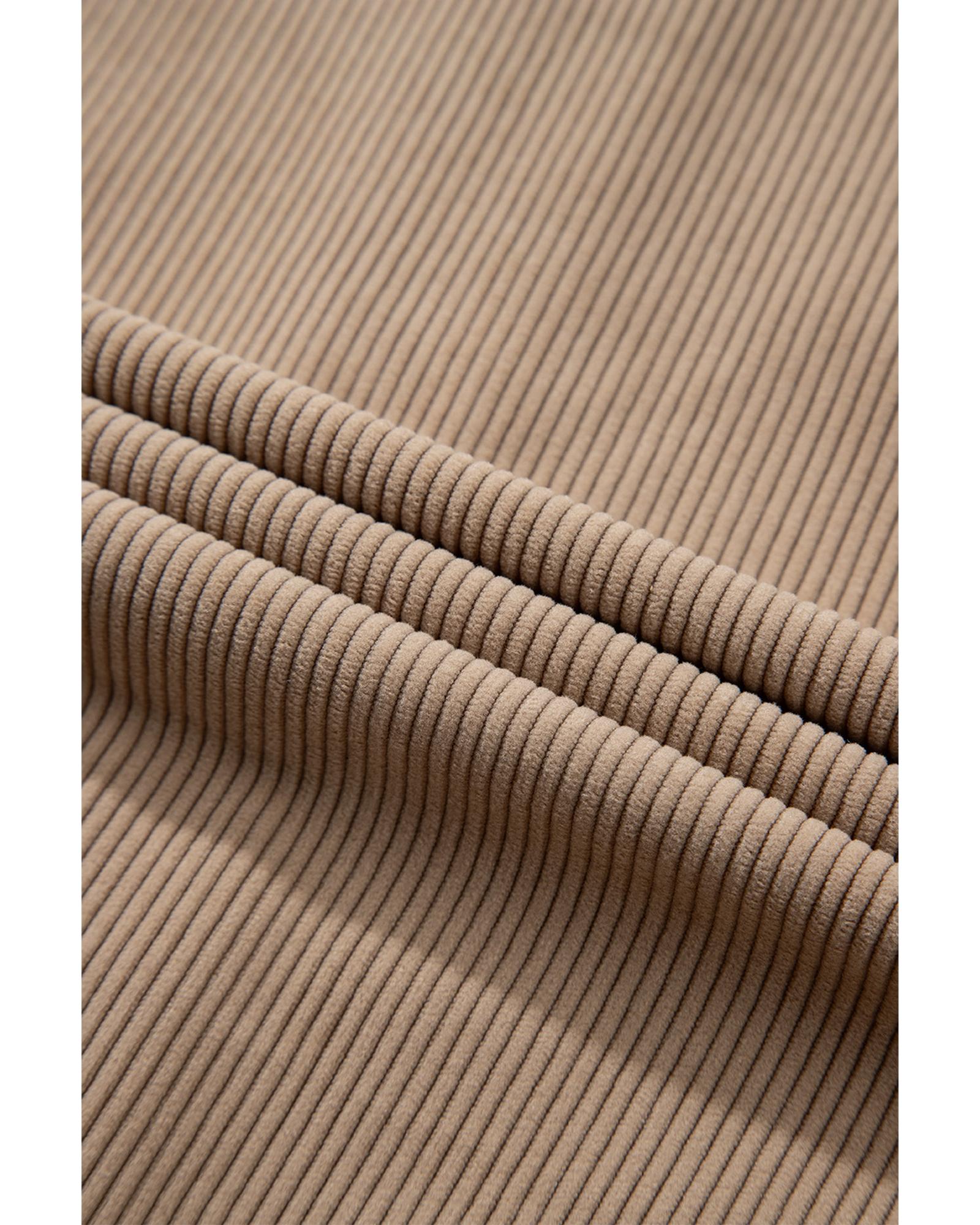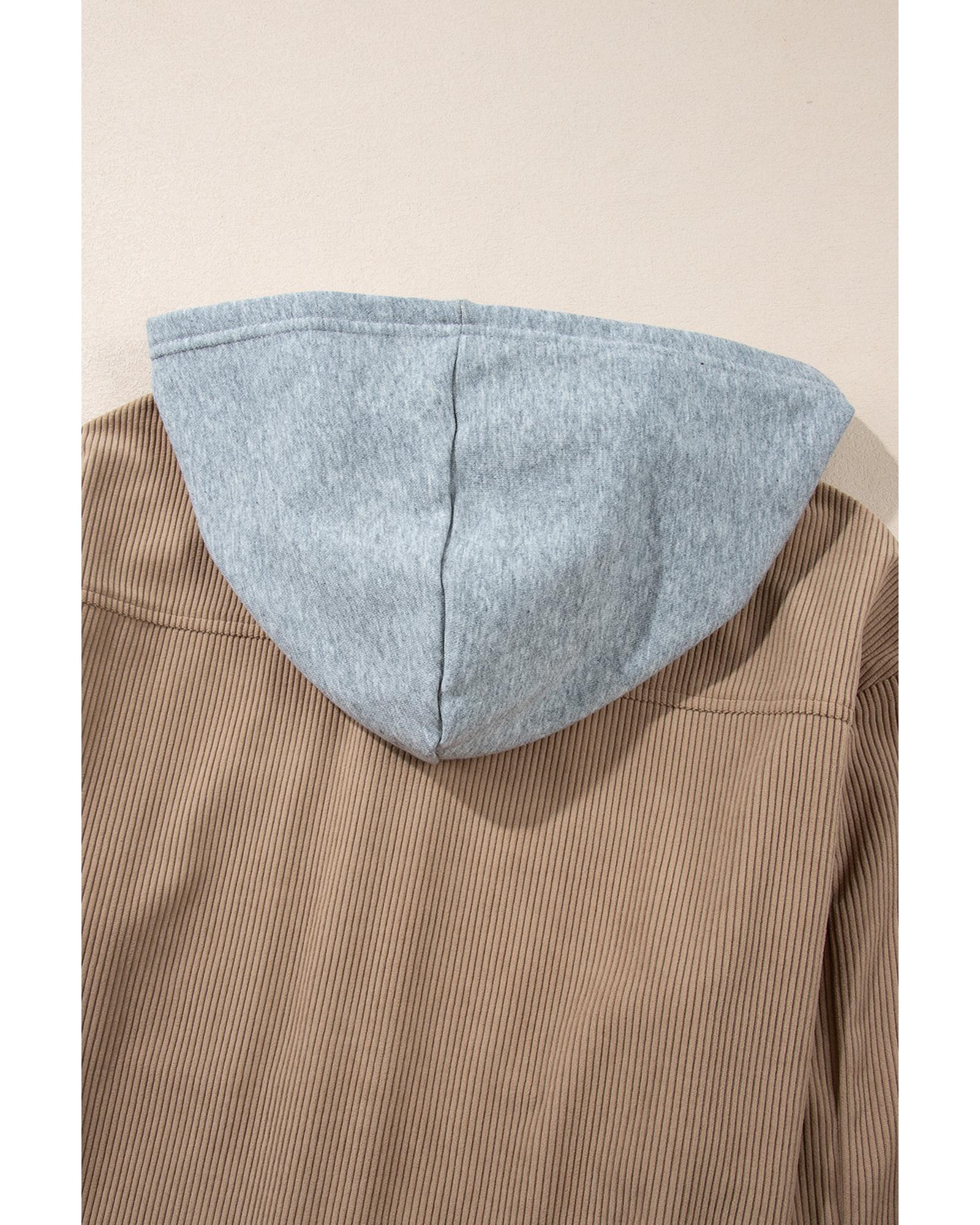 Pale Khaki Hooded Drawstring Pockets Corduroy Shacket – S