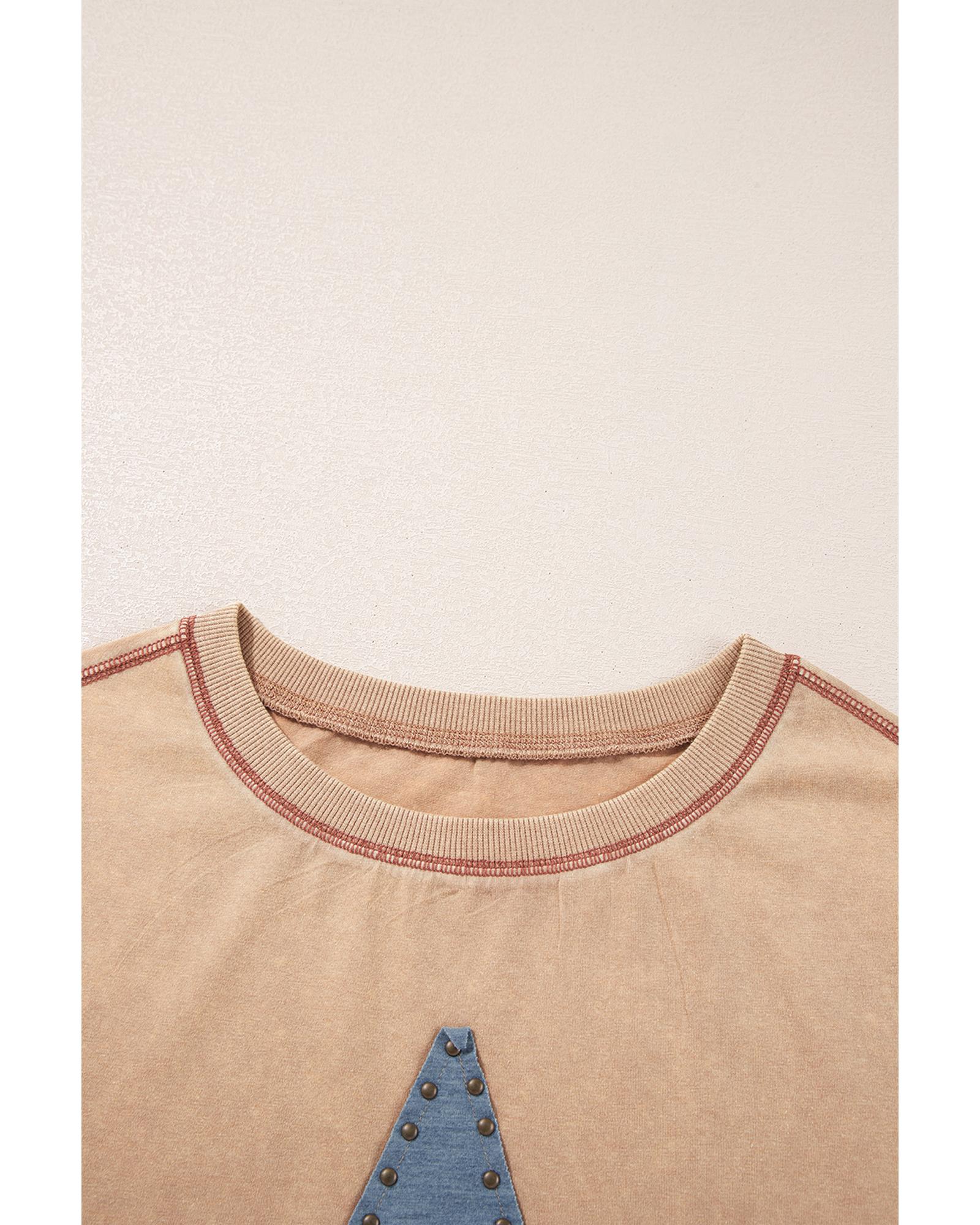 Pale Khaki Mineral Wash Stud Beaded Star Graphic Pocketed T Shirt Dress – S