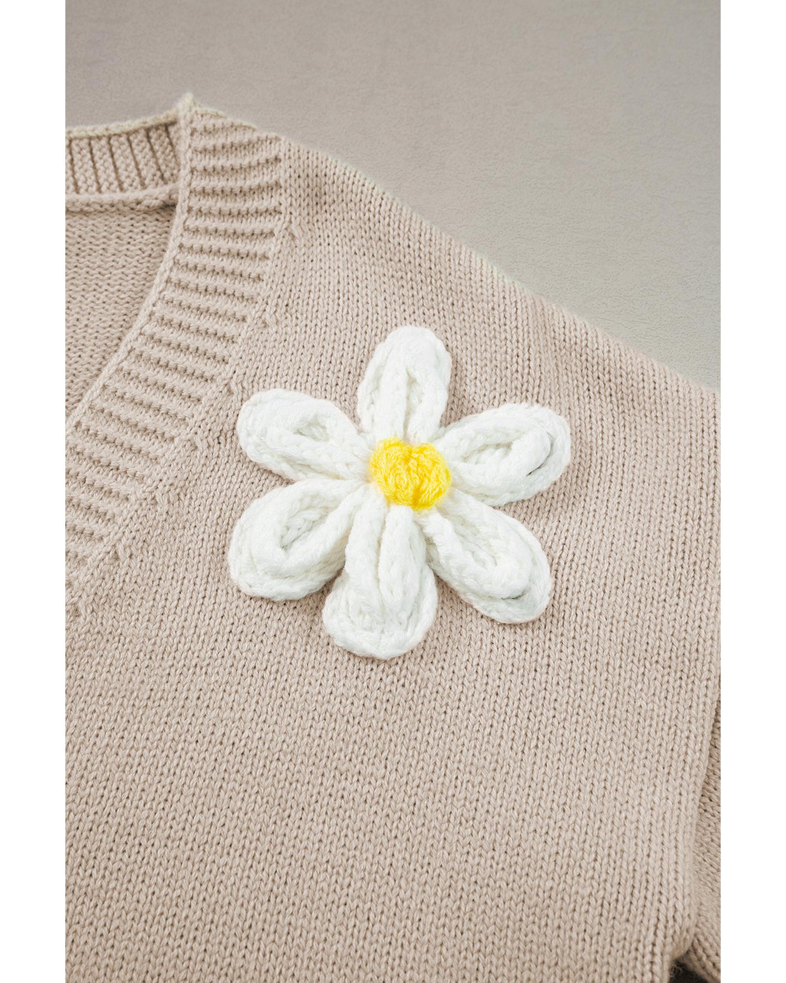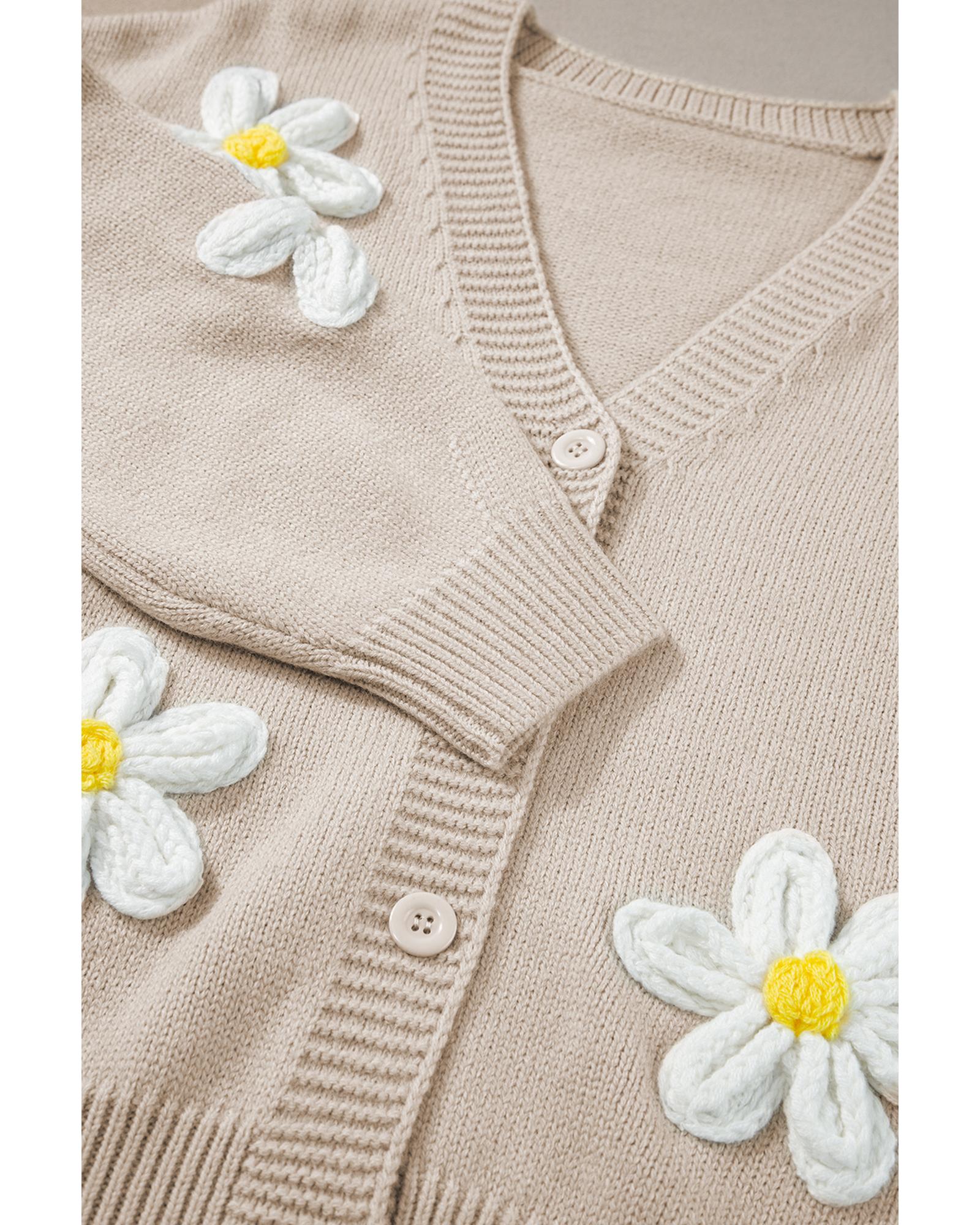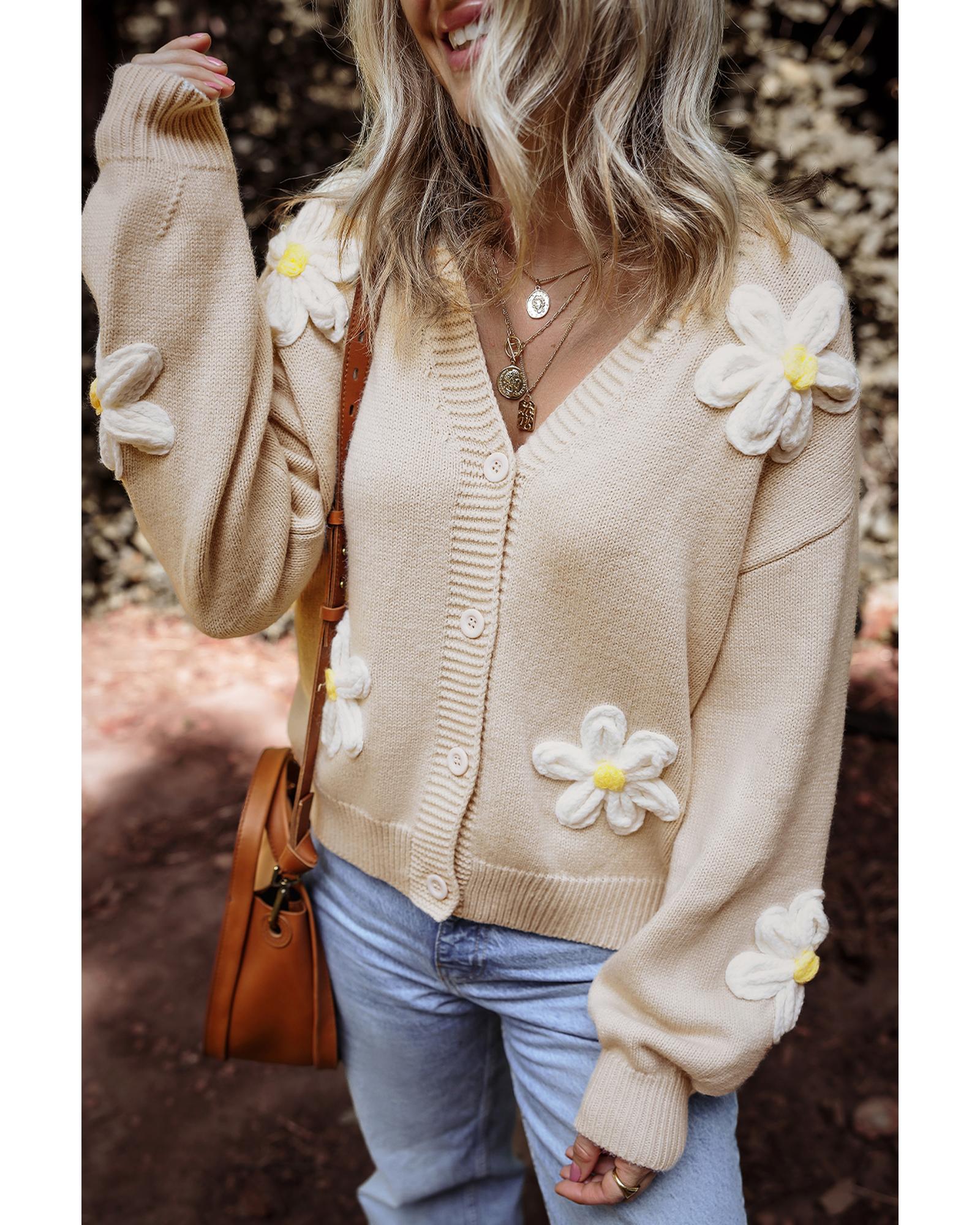 Parchment Elegant Flower Decor Button Front Cardigan – S
